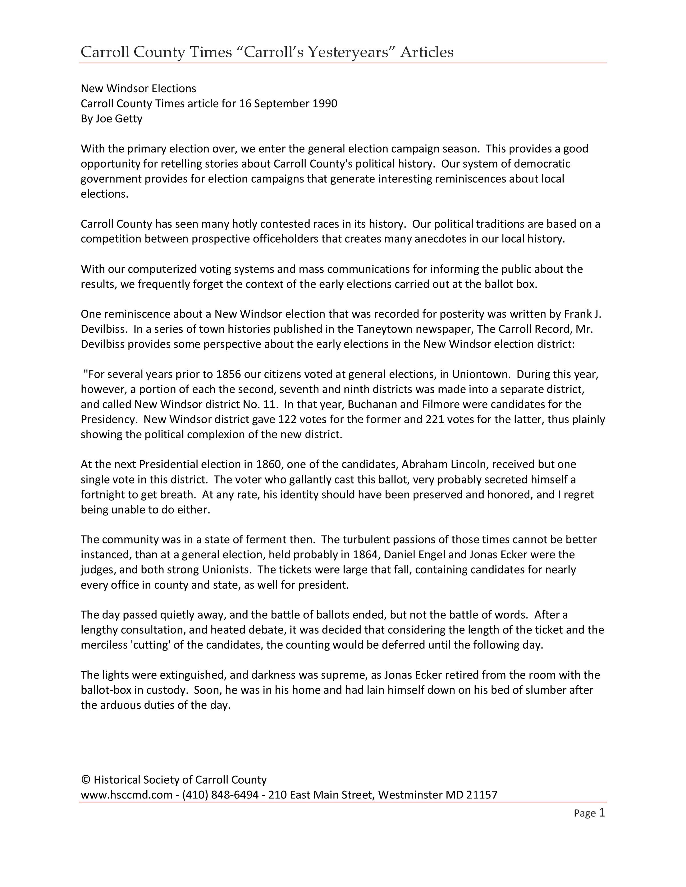 Historical Society of Carroll County, Maryland