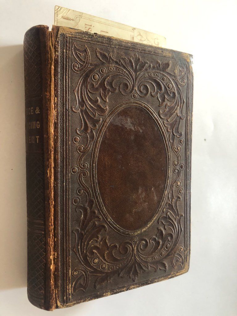 This New Testament was published in 1860 by J. Winebrenner, Harrisburg, Pa. An inscription on the back cover shows Mrs. Helen A. Romspert as the owner in 1880. Another inscription on the next page gives Mrs. Romspert's home as Uniontown, Carroll County, Md. Several devotional cards are inserted in the book presented to Cora Romspert by Fannie I. Davidson, 1881 and to Harvey Romspert, 31 March 1875. A loose paper in the book gives birth, marriage and death dates of James Sylvester Waltz and his wife Cora May (Romspert) Waltz. The names of Helen A. Romspert and Mrs. James Waltz both of Uniontown are inscribed on the inside of the back cover.