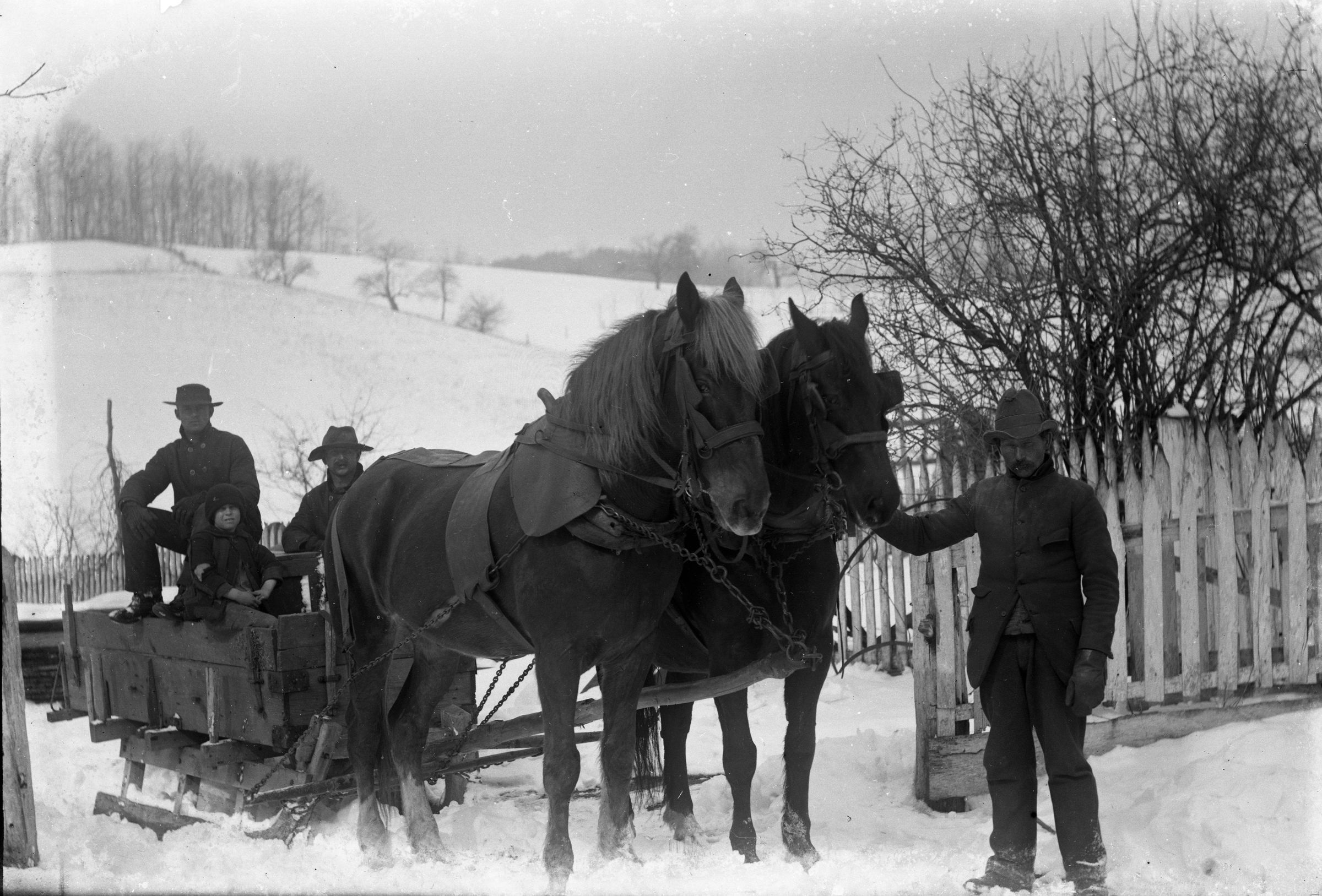 horses & sled & 3 menContext