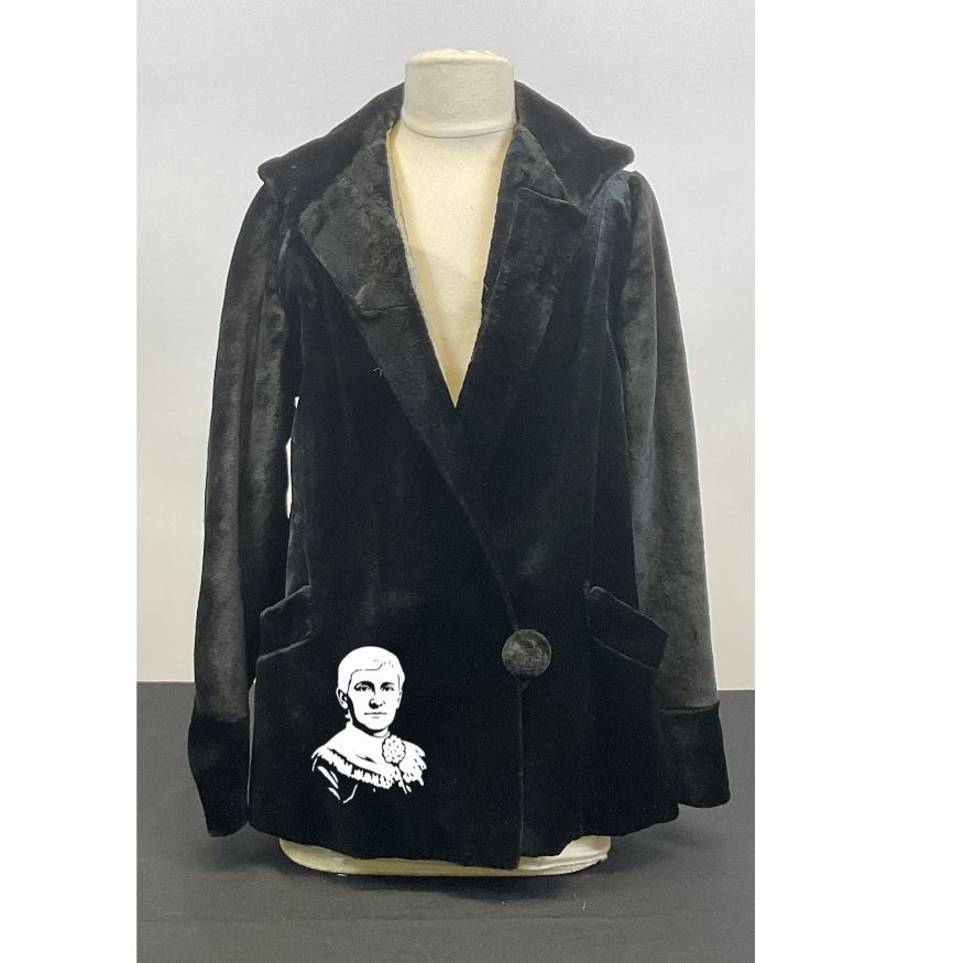 Original deed of gift reads "a black jacket worn by Miss Mary B. Shellman"