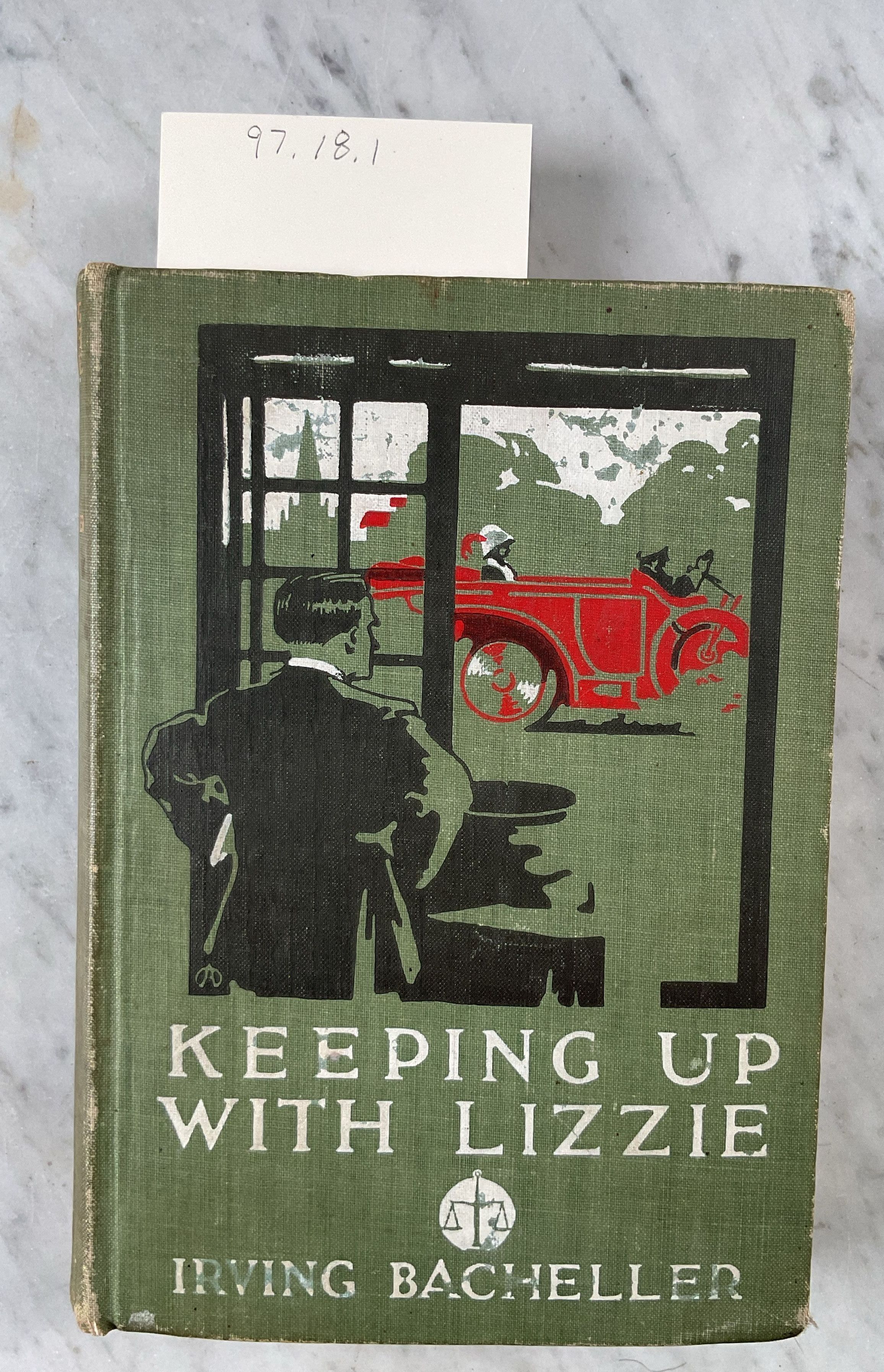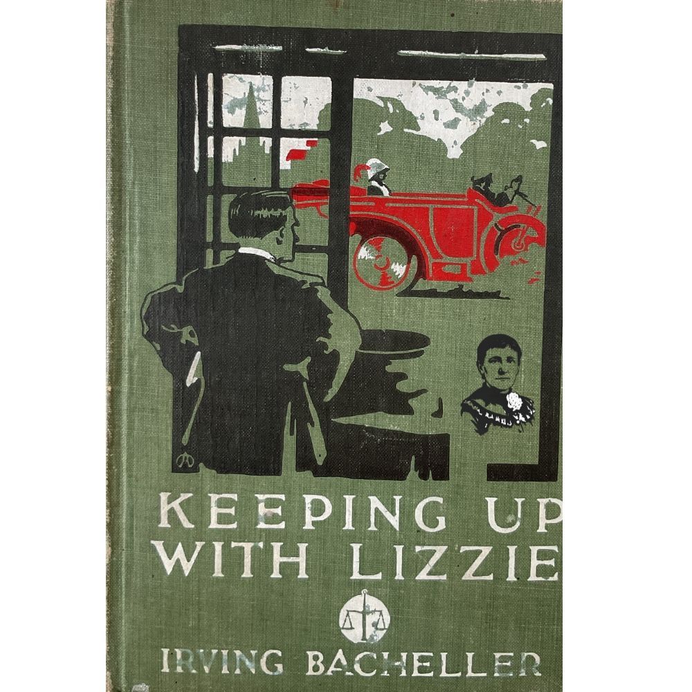 Book. "Keeping Up with Lizzie", by Irving Bacheller, clothbound with engraved illustrations, 7.125" x 5" x .875", inside front cover inscribed in black ink "Mary Bostwick Shellman from Miss Henderson Nov. 1911", inside back cover on end leaf inscribed in pencil "Carol", New York: Harper & Brothers Publishers, 1911.Context