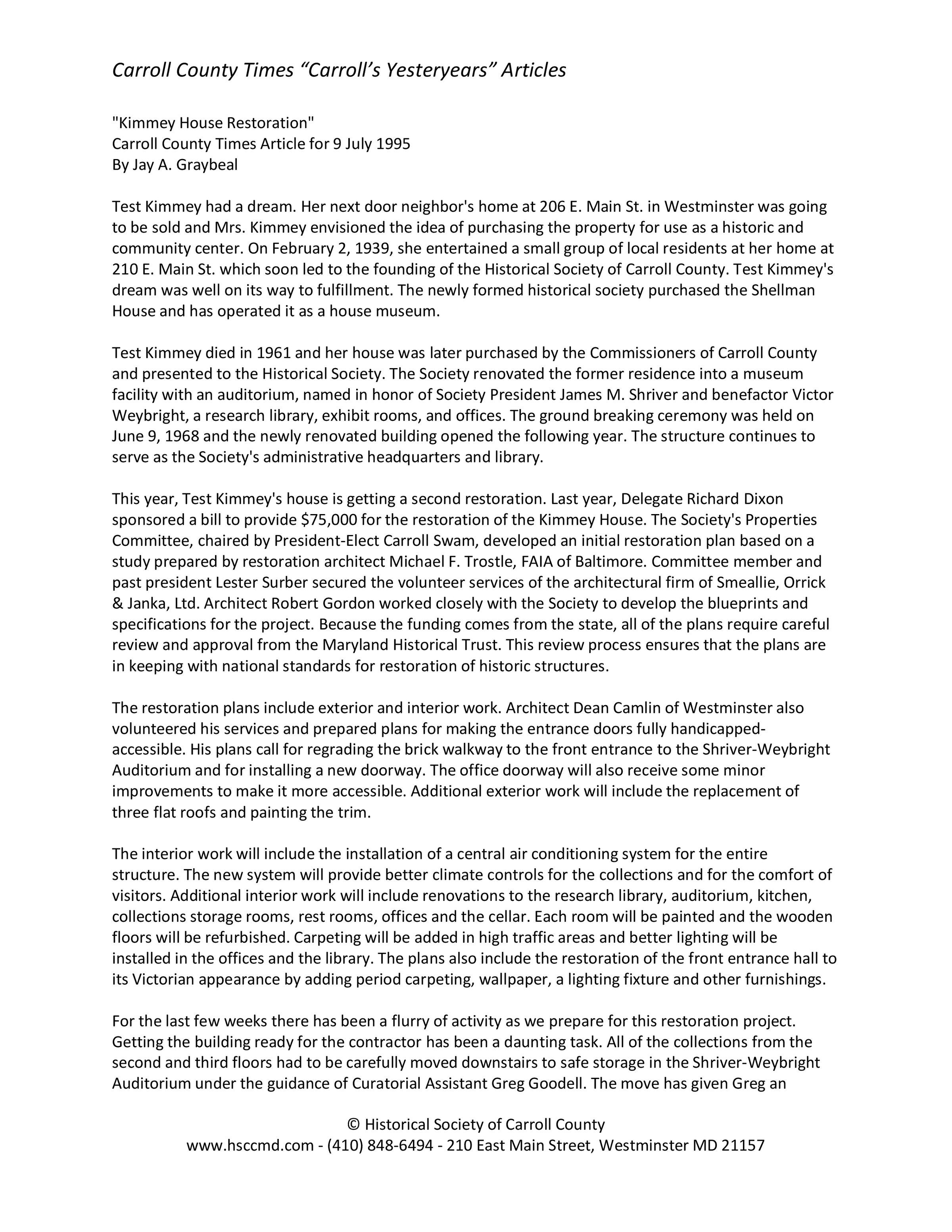 Historical Society of Carroll County, Maryland