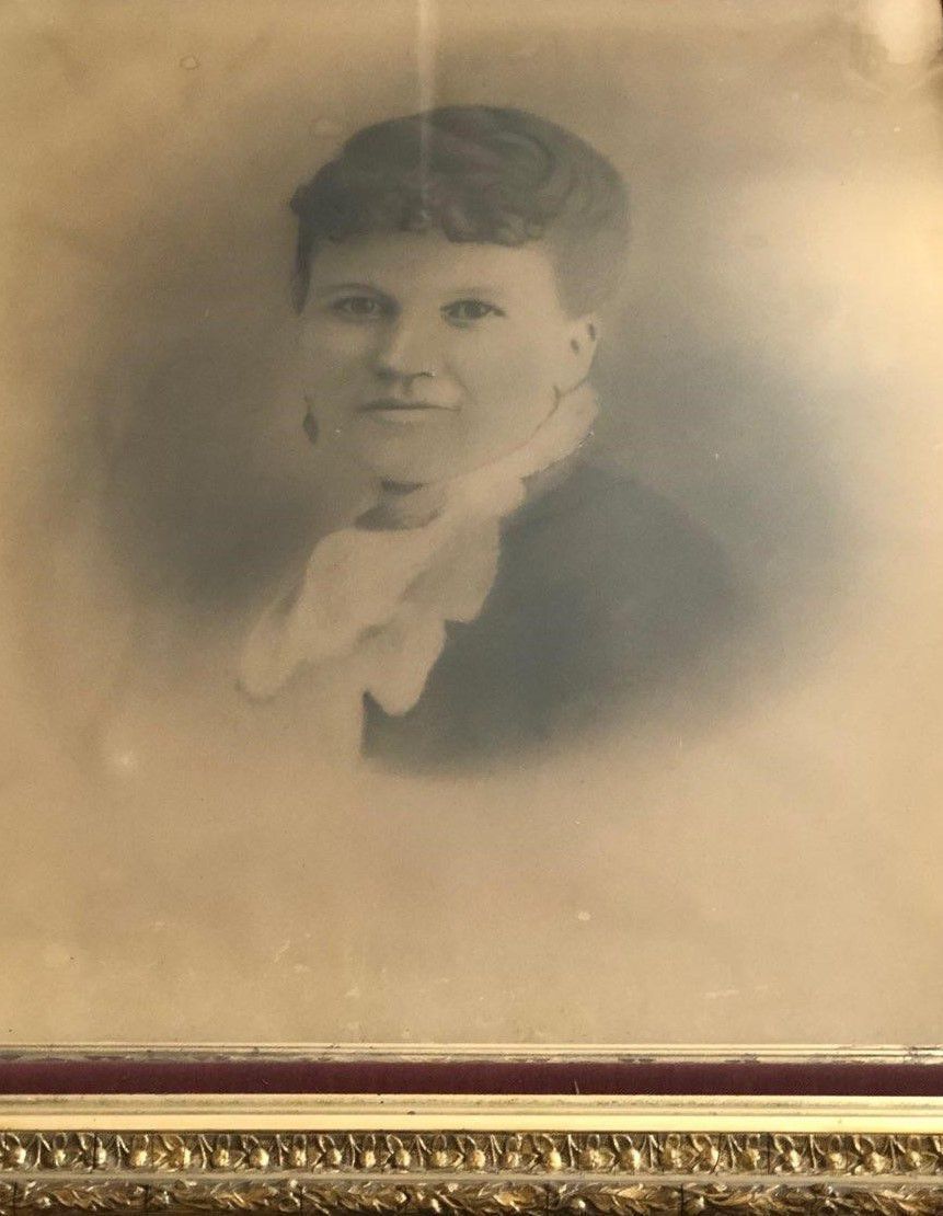 Print, photographic. Mrs. P. Allison Long. Charcoal on canvas. Photographer unknown. Rectangular wood frame, gesso decoration, gilt, red velvet trim. 35"h x 30"w x 4.5"d. C. 1875.Acquisition