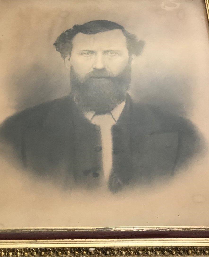 Print, photographic. Rev. P. Allison Long. Charcoal on canvas. Photographer unknown. Rectangular wood frame, gesso decoration, gilt, red velvet trim. 35"h x 30"w x 4.5"d. C. 1875.Acquisition