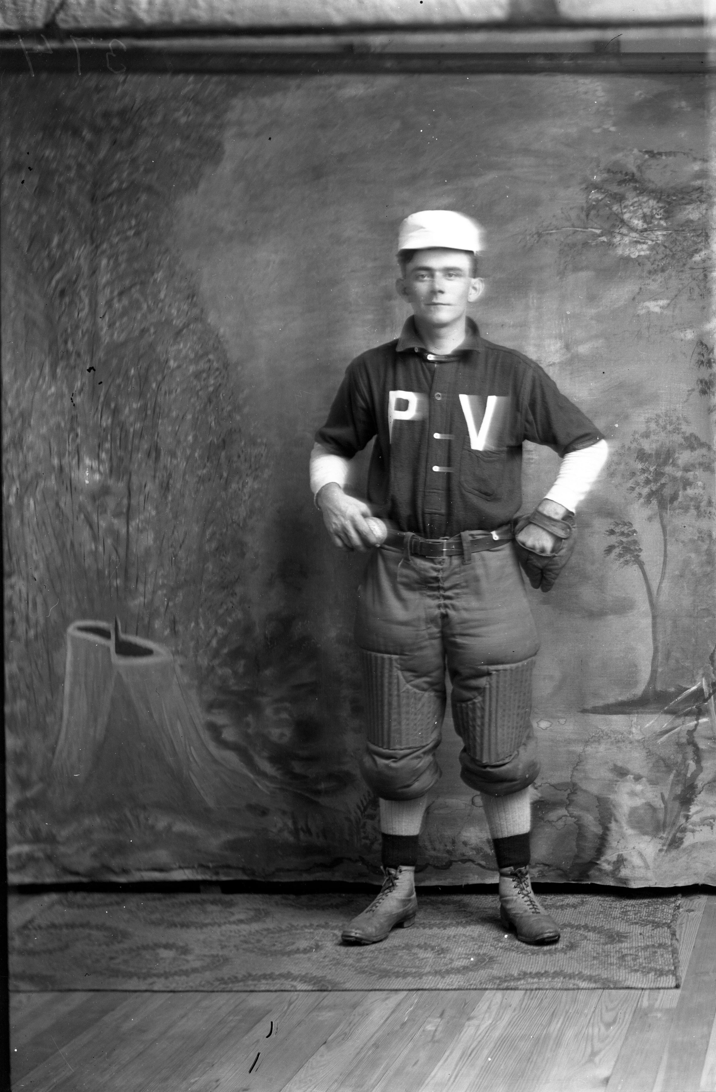 man in baseball uniform/ PV on shirtEntry/Object ID