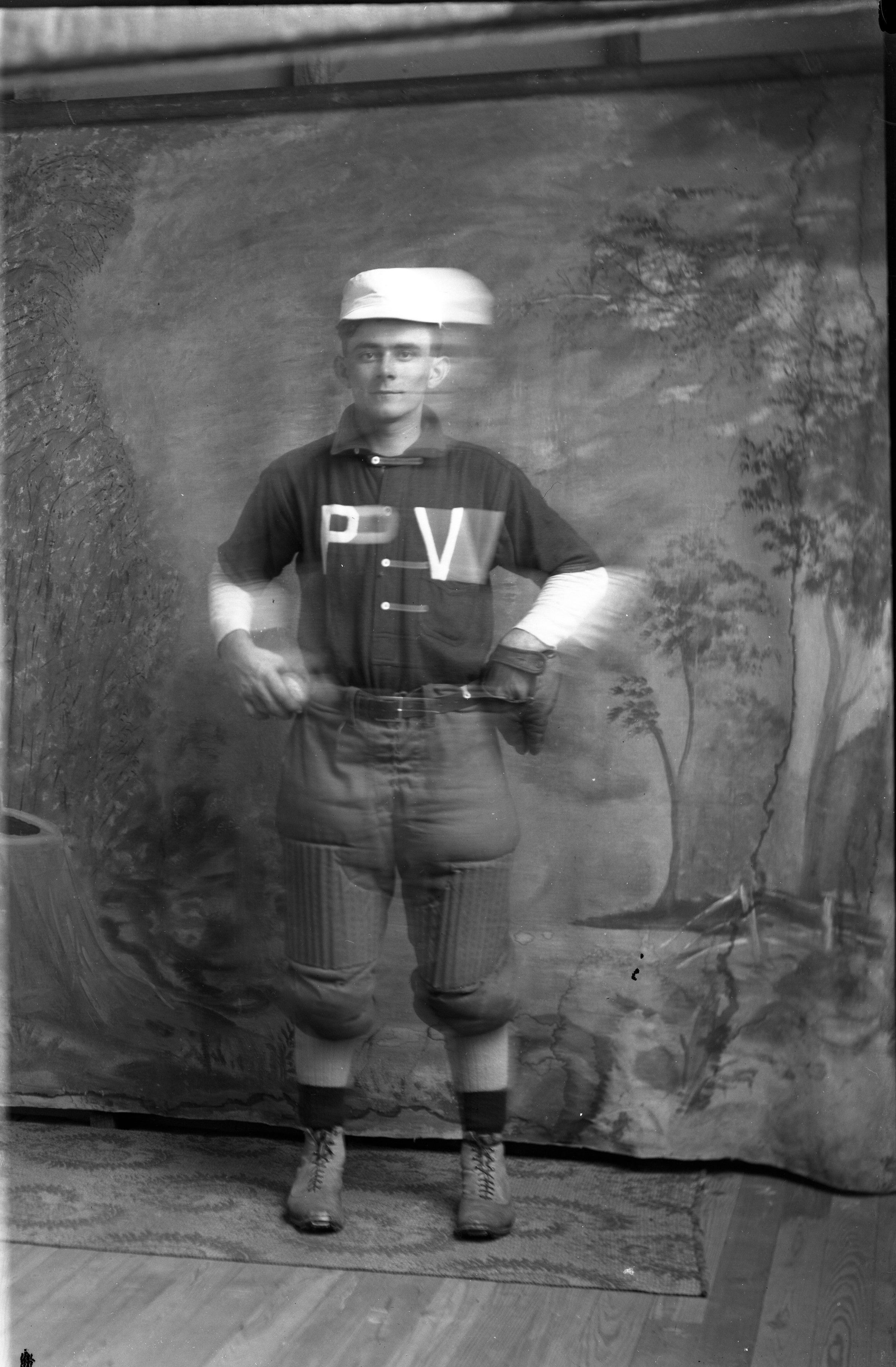man in baseball uniform/ PV on shirt - blurryEntry/Object ID