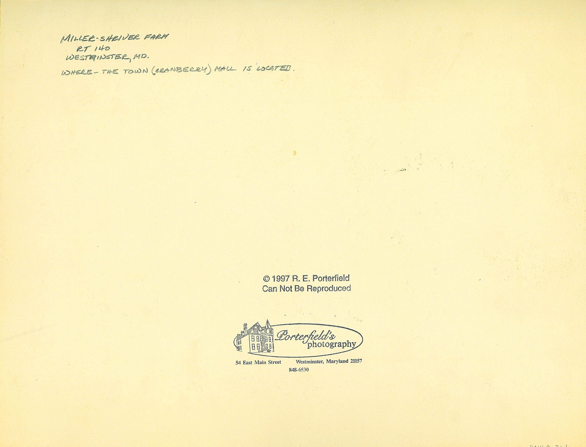 The Miller-Shriver Farm was at Rt. 140 and Rt. 17 in Westminster where the Cranberry Mall (later TownMall) was built. Photograph taken by Robert E. Porterfield, 1965.