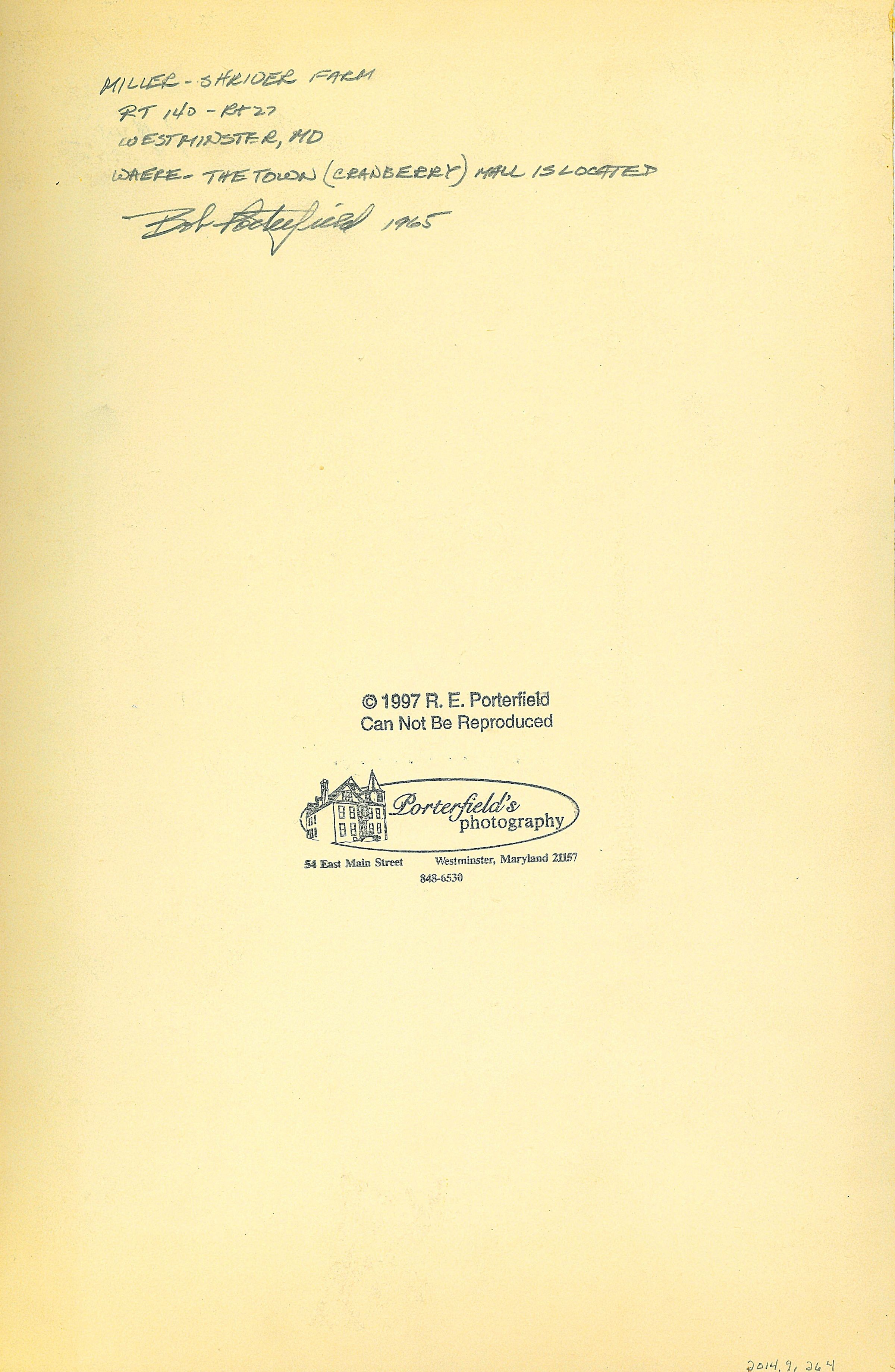 The Miller-Shriver Farm was at Rt. 140 and Rt. 17 in Westminster where the Cranberry Mall (later TownMall) was built. Photograph taken by Robert E. Porterfield, 1965.