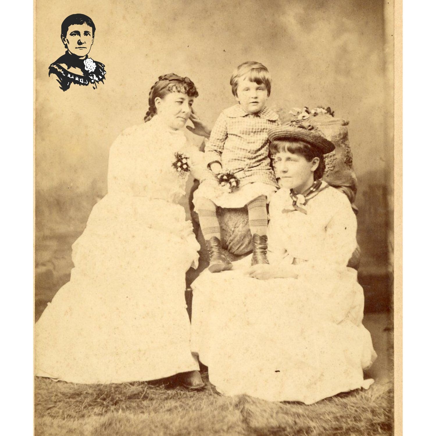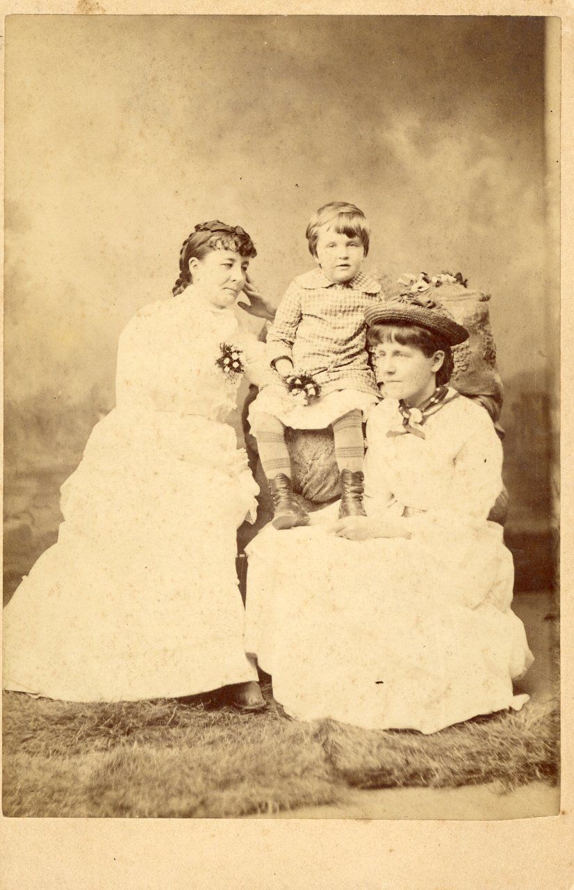 Photograph, cabinet. Image of Fanny C. S.[Shellman] Pearson, Mary B. Shellman and Paul Reese by unknown photographer. Undated. Handwritten on reverse side "Fanny C.S. Pearson, Mary B. Shellman, Paul Reese." Also "80’s" written at another time. Full-length photo shows two sisters seated on either side of young child about 3-4 years of age. 6.5" x 4.25". x. 1880sContext