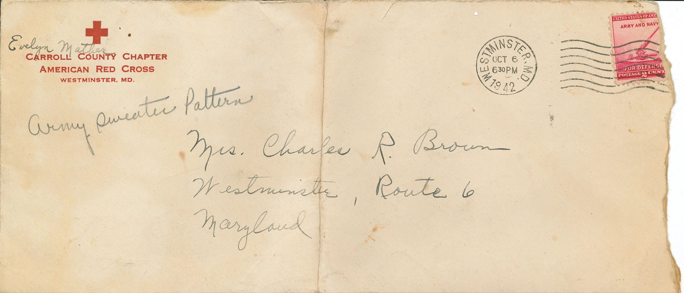 Evelyn Jackson Mather (1908-1968) served a Chairman of Production for the Carroll County Chapter of the American Red Cross during World War 2. She coordinated volunteer efforts to produce materials for the war effort, including knitting sweaters for US Servicemen. Mather was a public schoolteacher and public librarian, later head librarian at Davis Library in Westminster.Acquisition