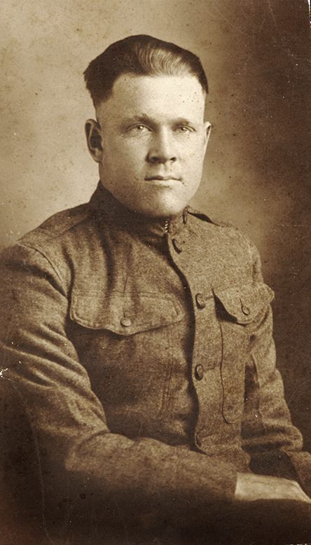Print, photographic. Pvt. Granville E. Roop, U.S. Army. Photographer unknown. 3.5" x 2", in oval plated-plated frame. C. 1918Acquisition