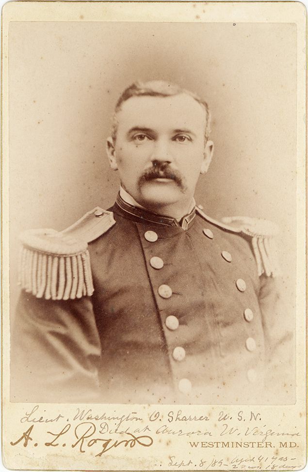 Lt. Washington O. Sharrer (1849-1889) joined the navy as a midshipman during the Civil War and received training at the wartime location of the Naval Academy at Newport, R.I.. By the time of his graduation in 1868, the school had returned to its original location at Annapolis. As a junior officer, he traveled extensively to foreign ports, where he contracted a fatal illness in 1889.