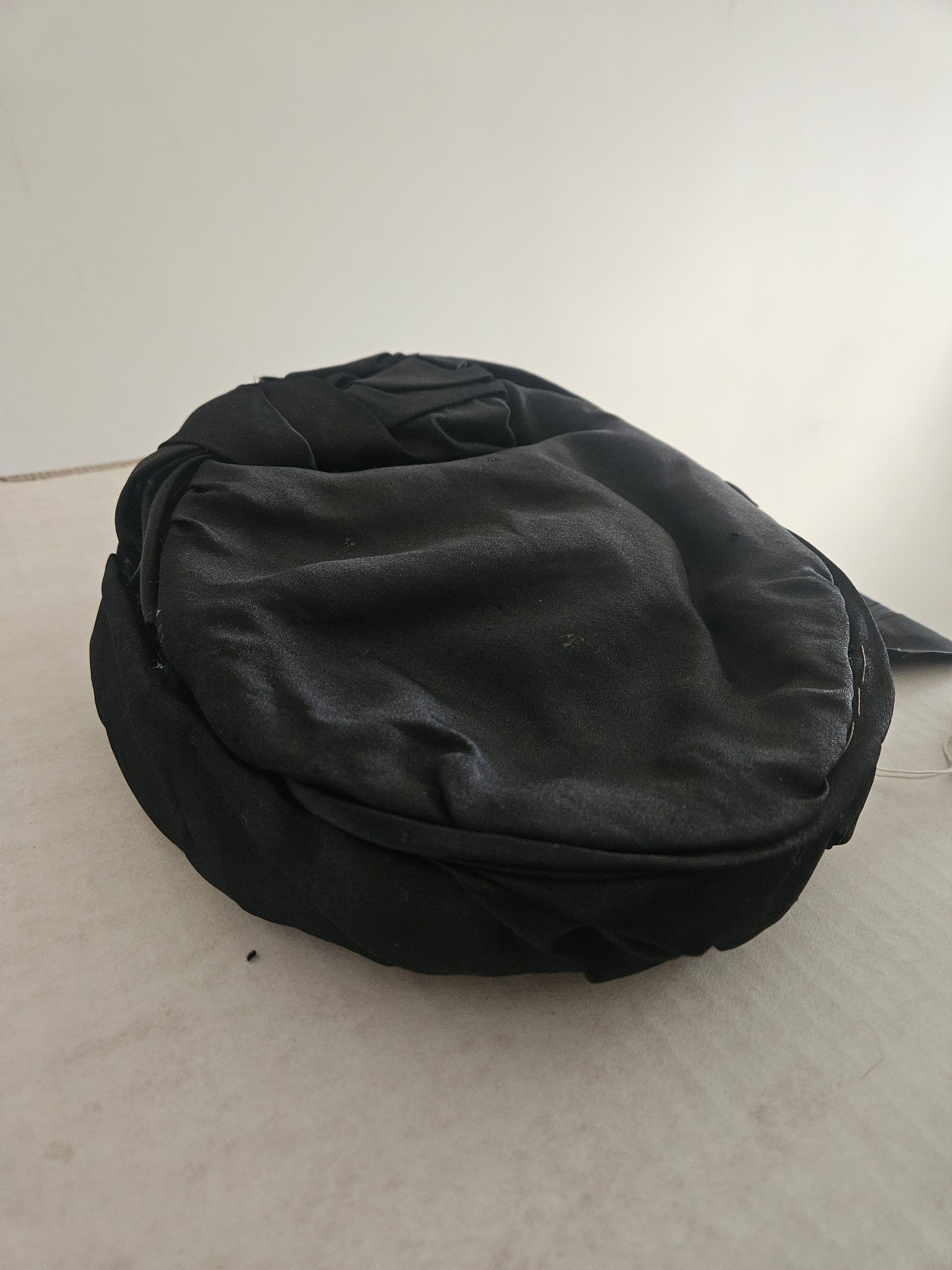 Hat. Woman's, round, black silk, 2"h x 8.5"diameter. C. 1920.Acquisition