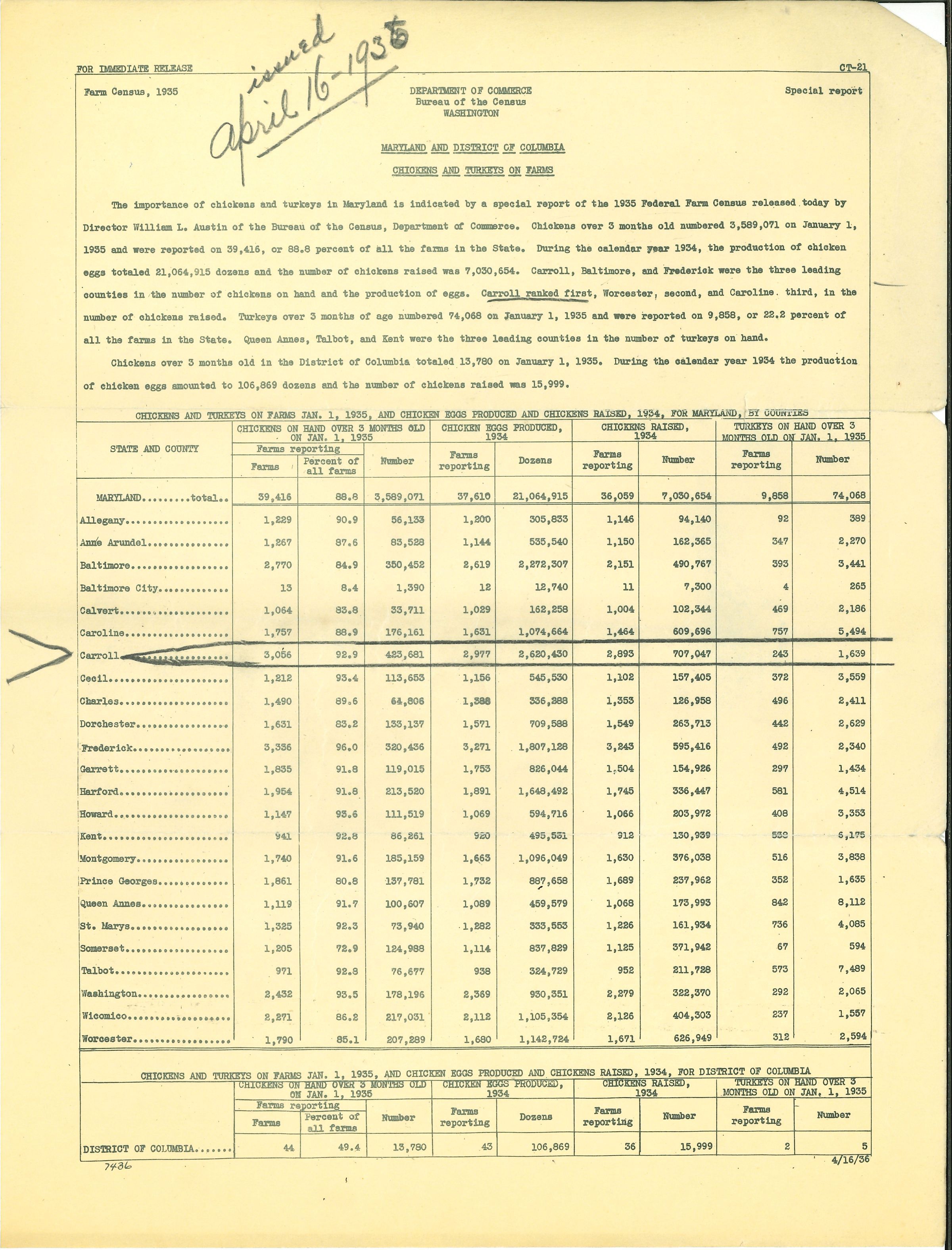 "Maryland and District of Columbia Chickens and Turkeys of Farms"Acquisition