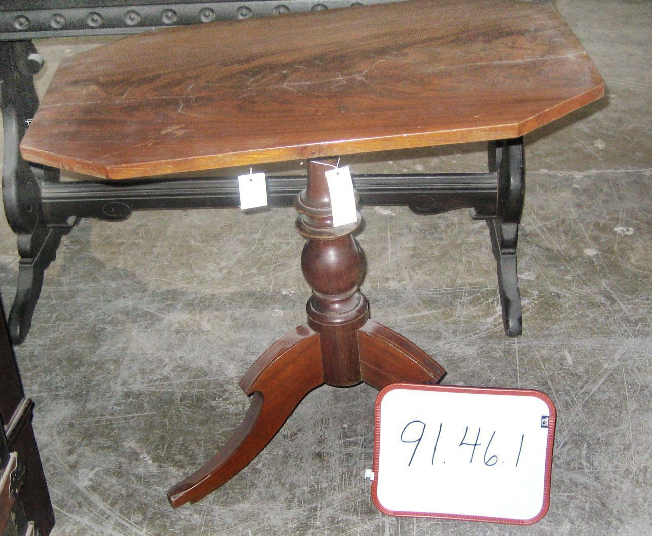 Table. Occasional, tilt-top table, mahogany, shaped tripod legs with string inlay and brass casters, bulbous turned shaft, flame veneered octagon top, brass catch. 27.5" x 29.125" x 18.625". Possibly Baltimore, Md. 1815-1825.Acquisition