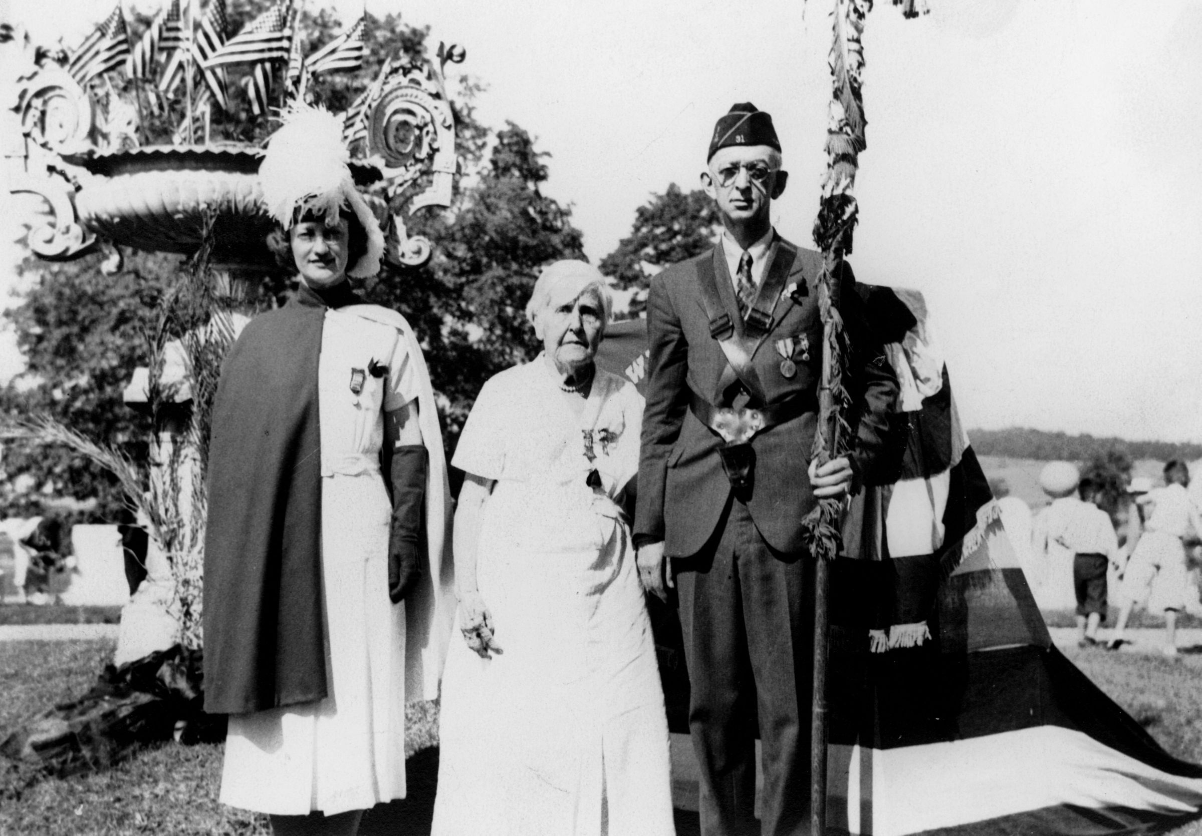 Gladys Wimert, Mary Shellman, and Albert Mitten; Memorial Day, 1937. Copy slide.Acquisition