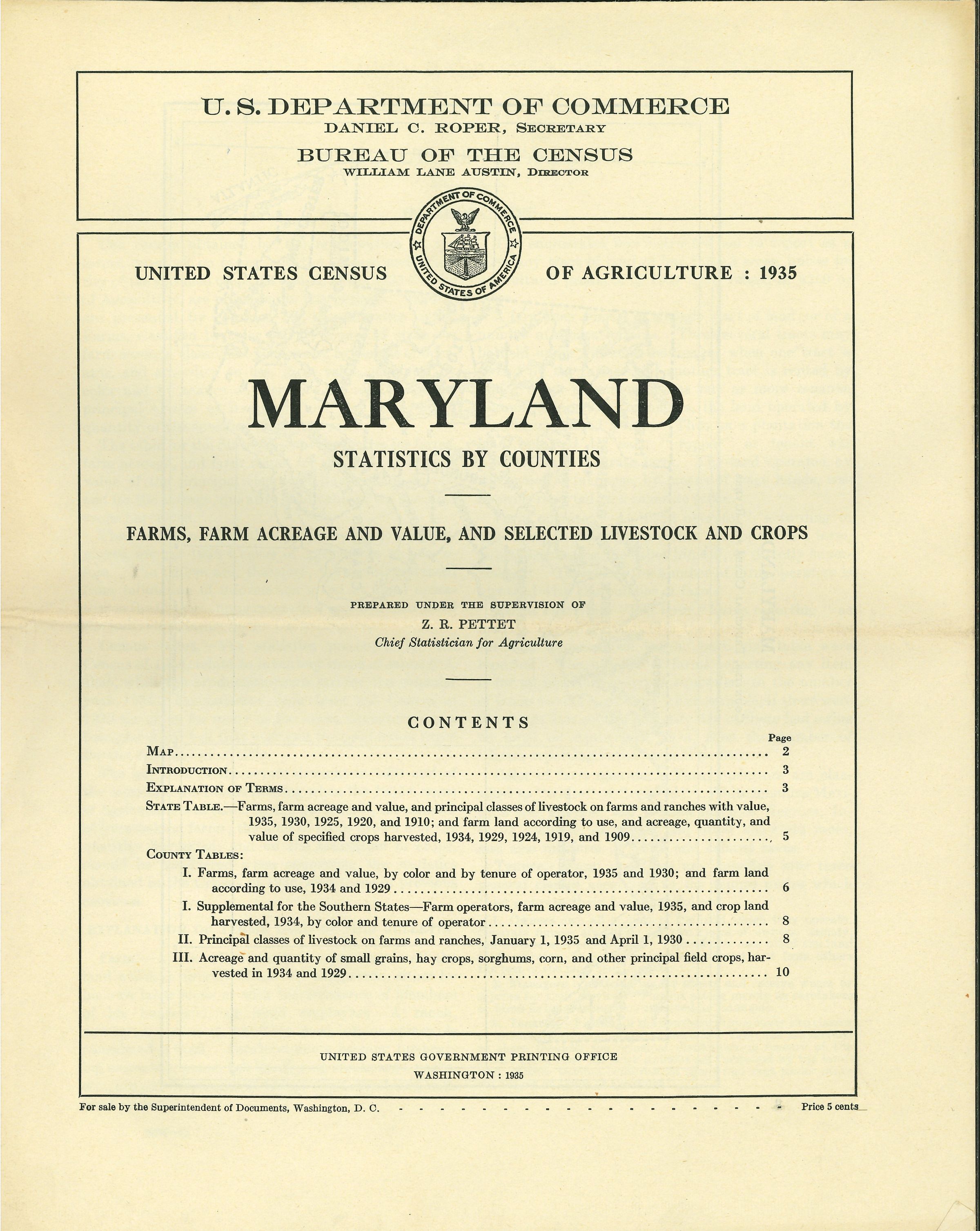 United States Census of Agriculture: 1935, Maryland Statistics by CountiesEntry/Object ID