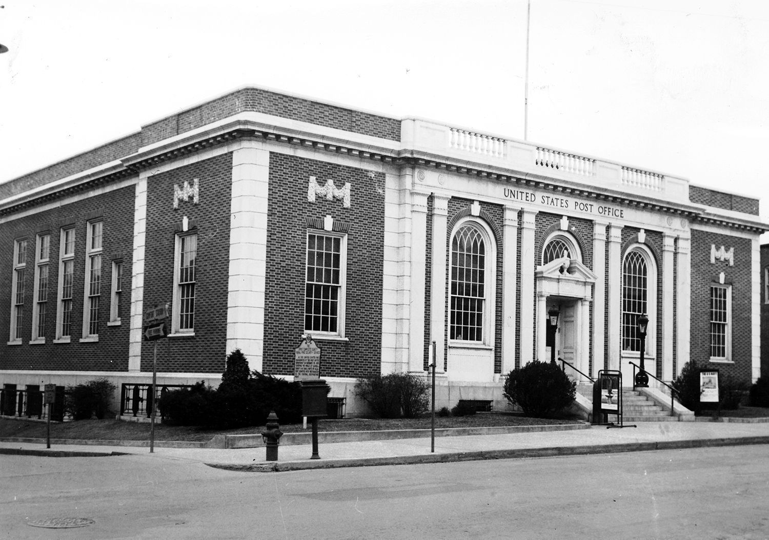 Print, photographic. B/W photograph of the exterior of the Westminster post office, corner of Main St. and Longwell Ave. Stamped "John R. Byers" on back.Acquisition