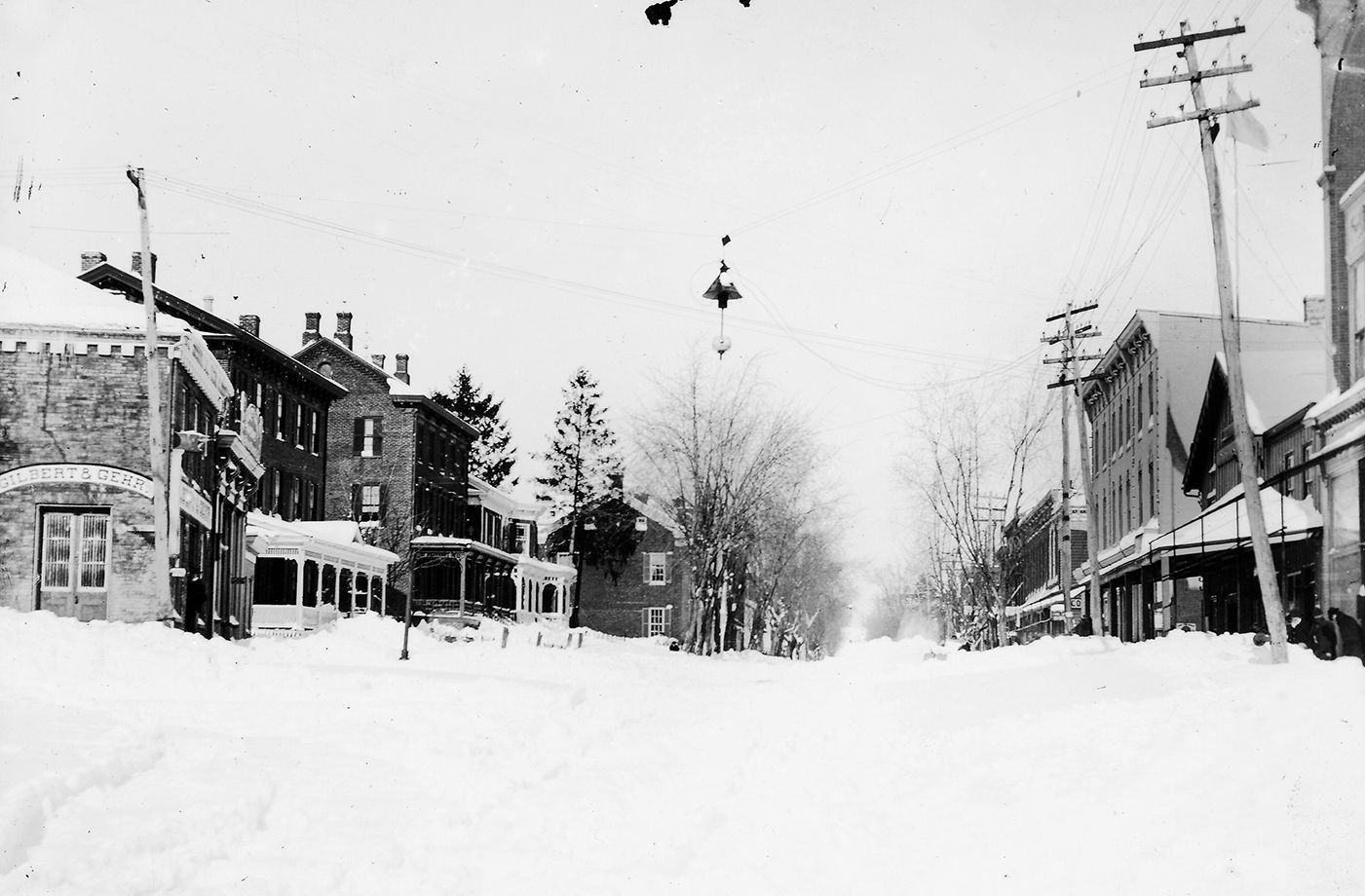Print, photographic. B/W photo showing the intersection of Main and Liberty Streets in Westminster. Mounted on board.Acquisition