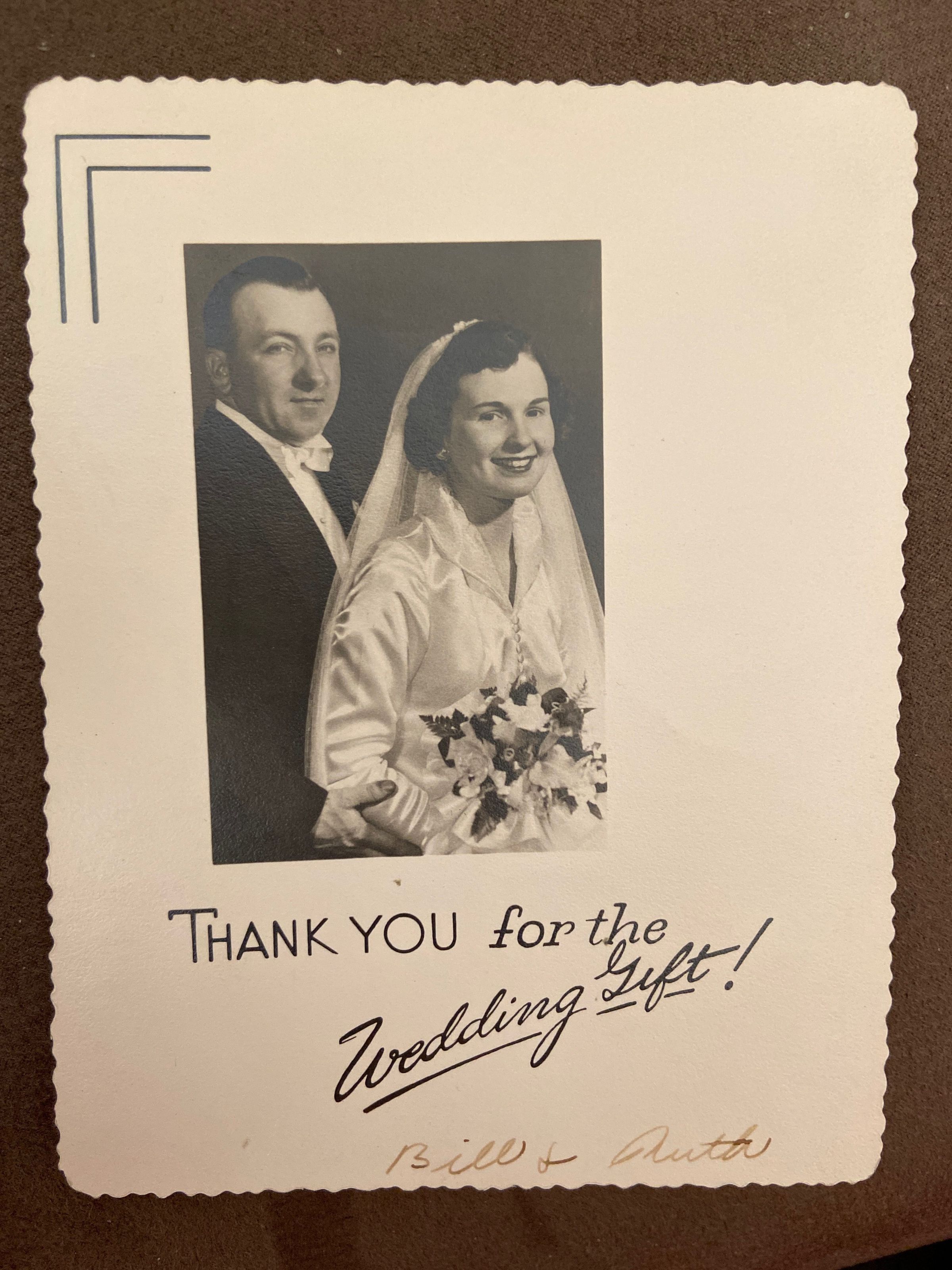 Thank You for the Wedding Gift, signed by Bill and Ruth