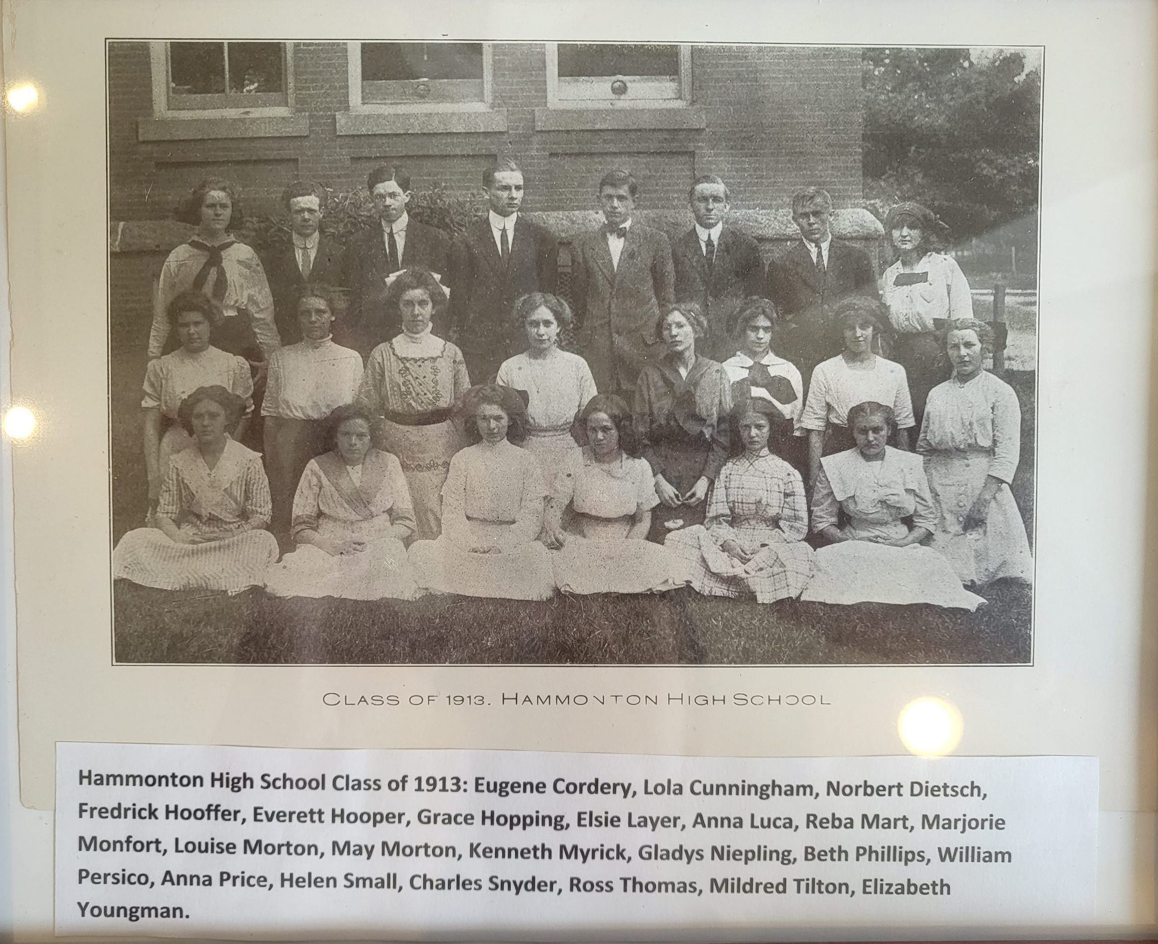 Photograph of the 1913 Graduating Class of Hammonton High School, list of student names added at bottom
