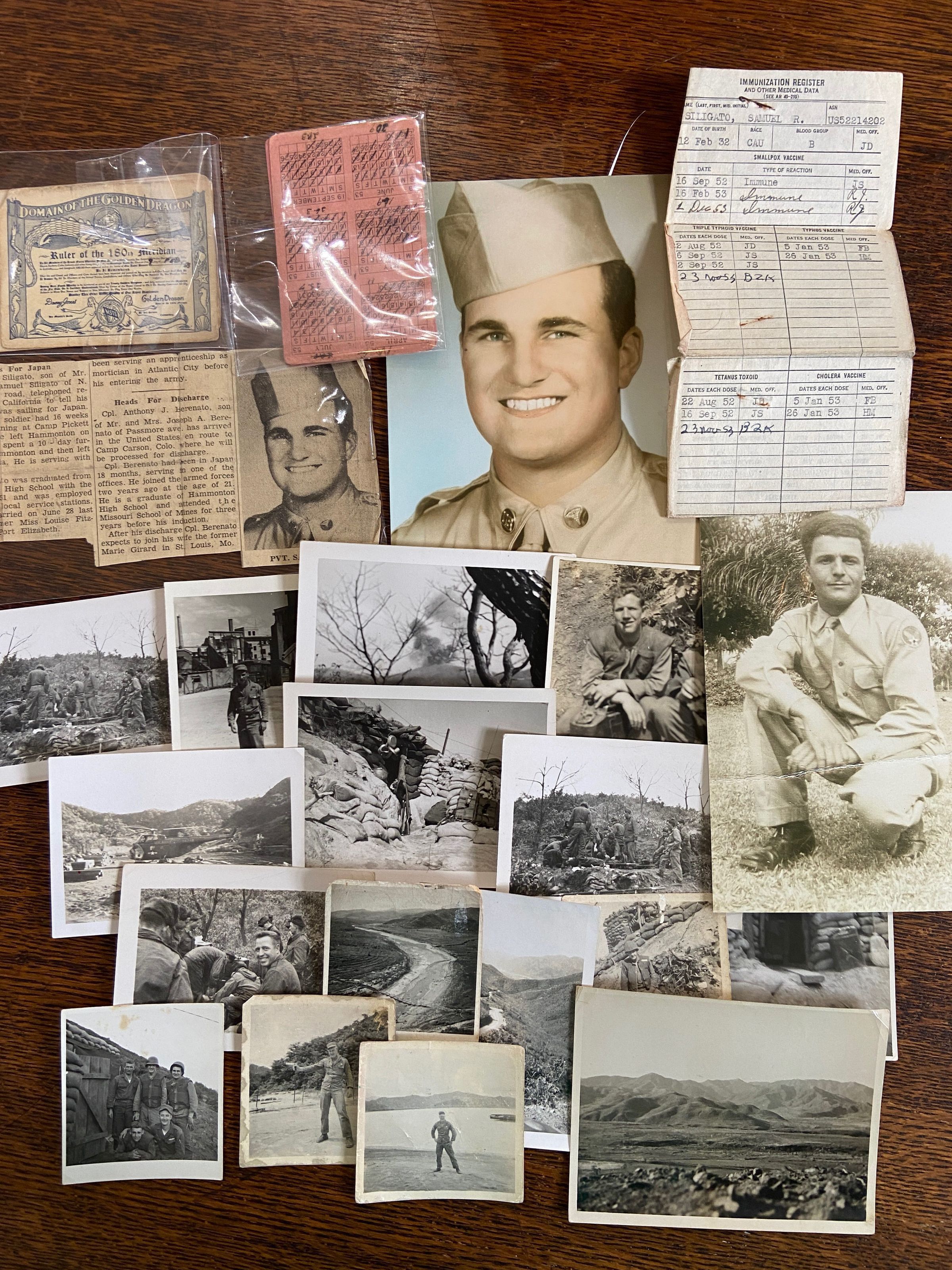 Korean War Memorabilia and Photos, Selective Service documents of Sam Siligato. Photos are copies of originals. 2023.28.5.1- Photo and newsclipping-“Siligato Sails to Japan” 2023.28.5.2- Selective Service System Registration Certificate 2023.28.5.3- Immunization Records 2023.28.5.4- Welcoming Banquet - Basic Training 2023.28.5.5- Domain of the Golden Dragon 2023.28.5.6- Collection of copies of Korea pictures 2023.28.5.7- Calendar counting down days served 2023.28.5.8- Discharge Papers 2023.28.5.9- Citation 2023.28.5.10- Awards received for service