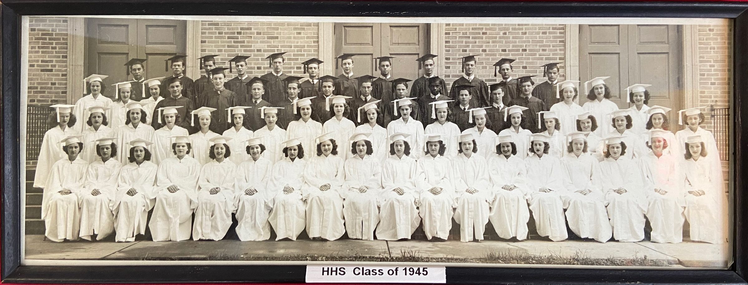 Black and white photograph of the Hammonton High School Graduating Class of 1945