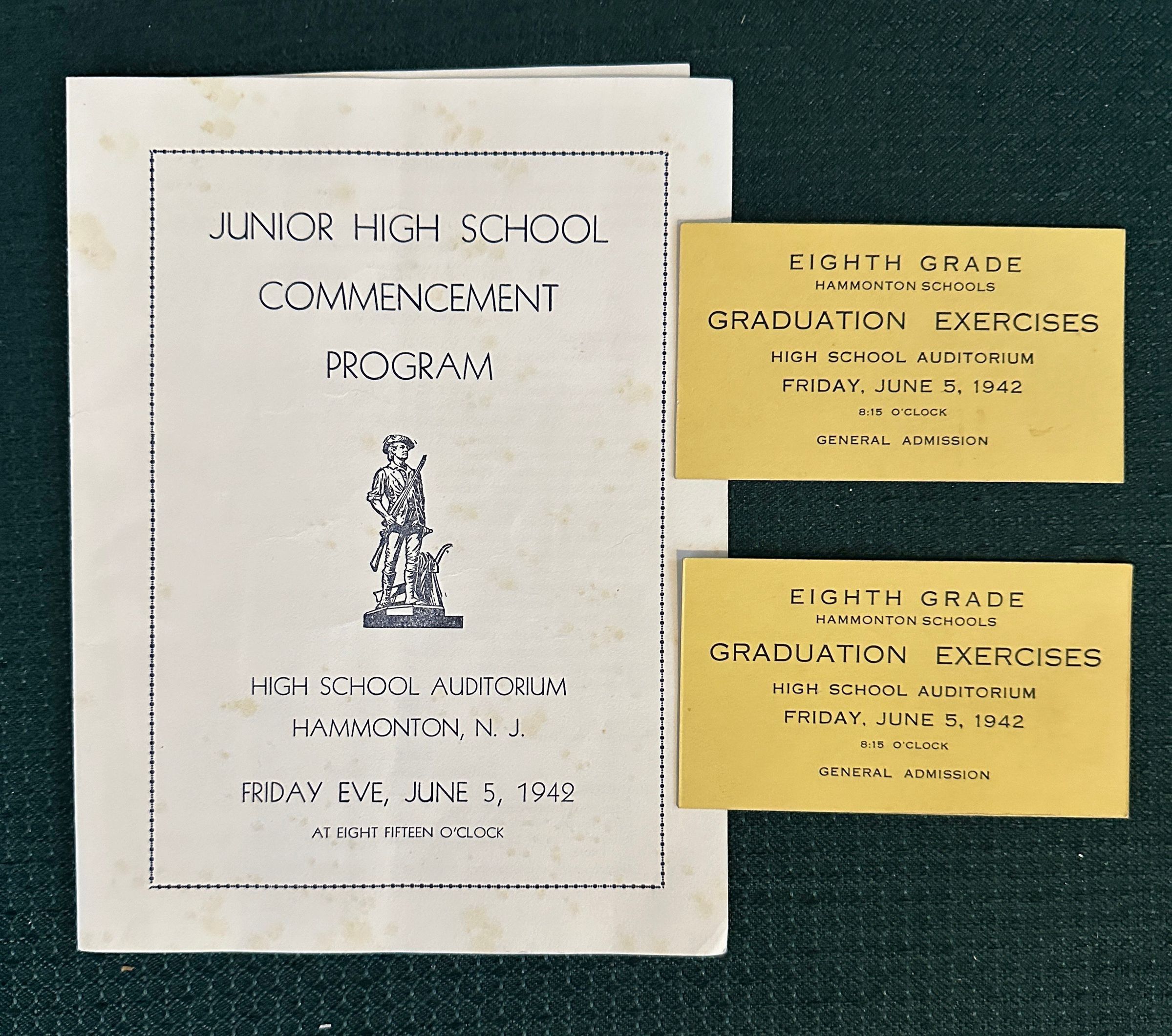 1942 Hammonton Jr High School Commencement Memorabilia 2024.1.4.1- 1942 Jr HS Commencement Program (4) 2024.1.4.2- 1942 Jr HS Commencement Tickets (2)
