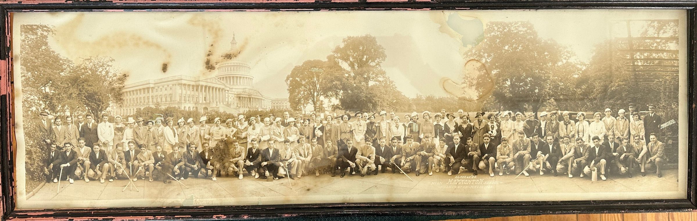Large framed photo of the 1935 Class of HHS on trip to Capital in Washington, D.C.