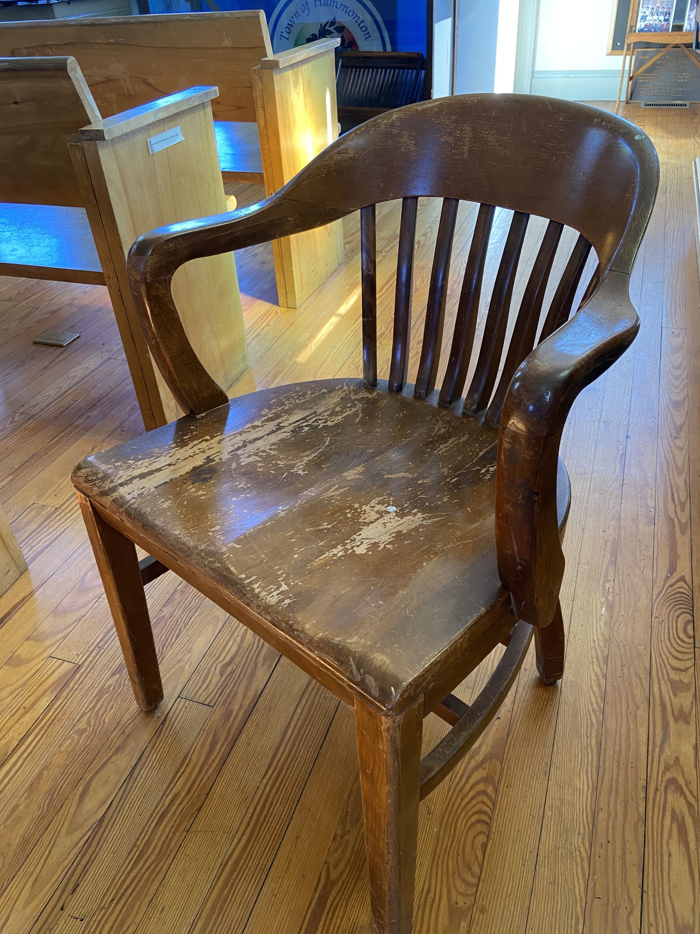 Maple Side Chairs- 5 Total. Barrel back with 8 slats. Separate seat with fitted base, 1 piece arm and crest rail