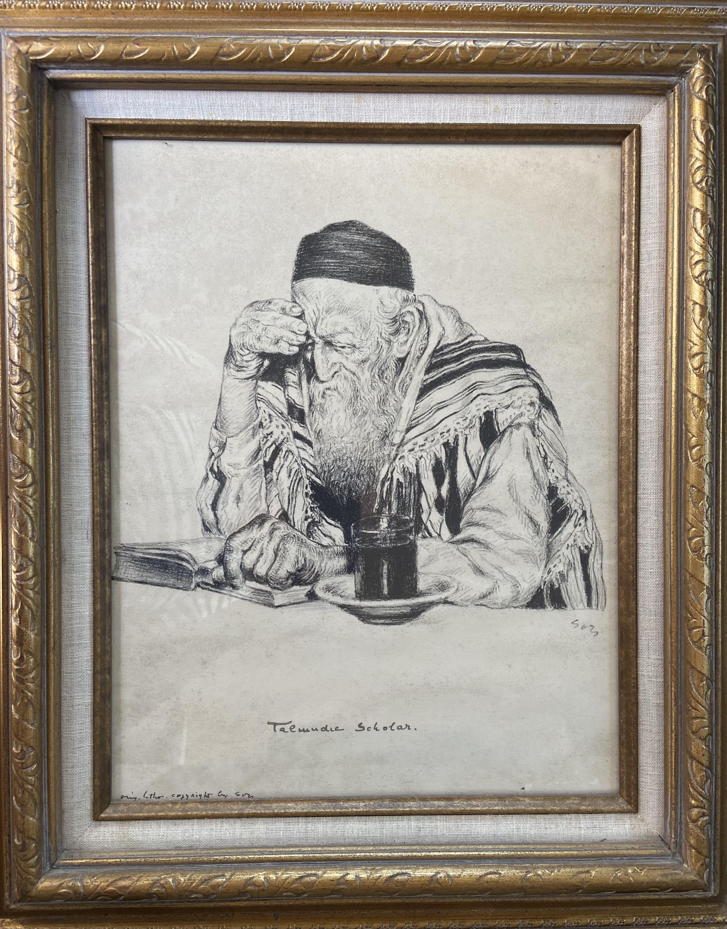 Framed lithograph of Talmudic Scholar