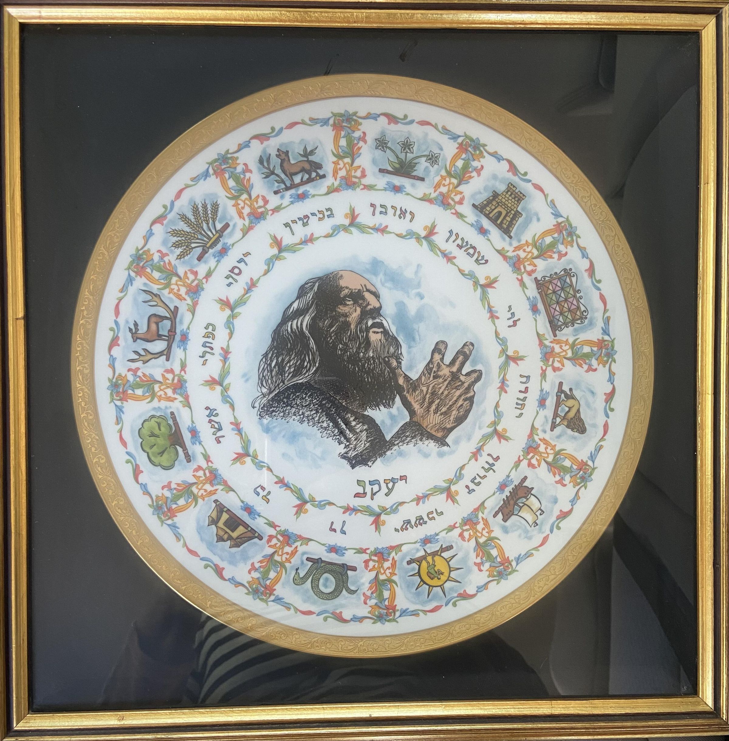 Framed China Plate of Moses Encircled by figures of Jewish faith