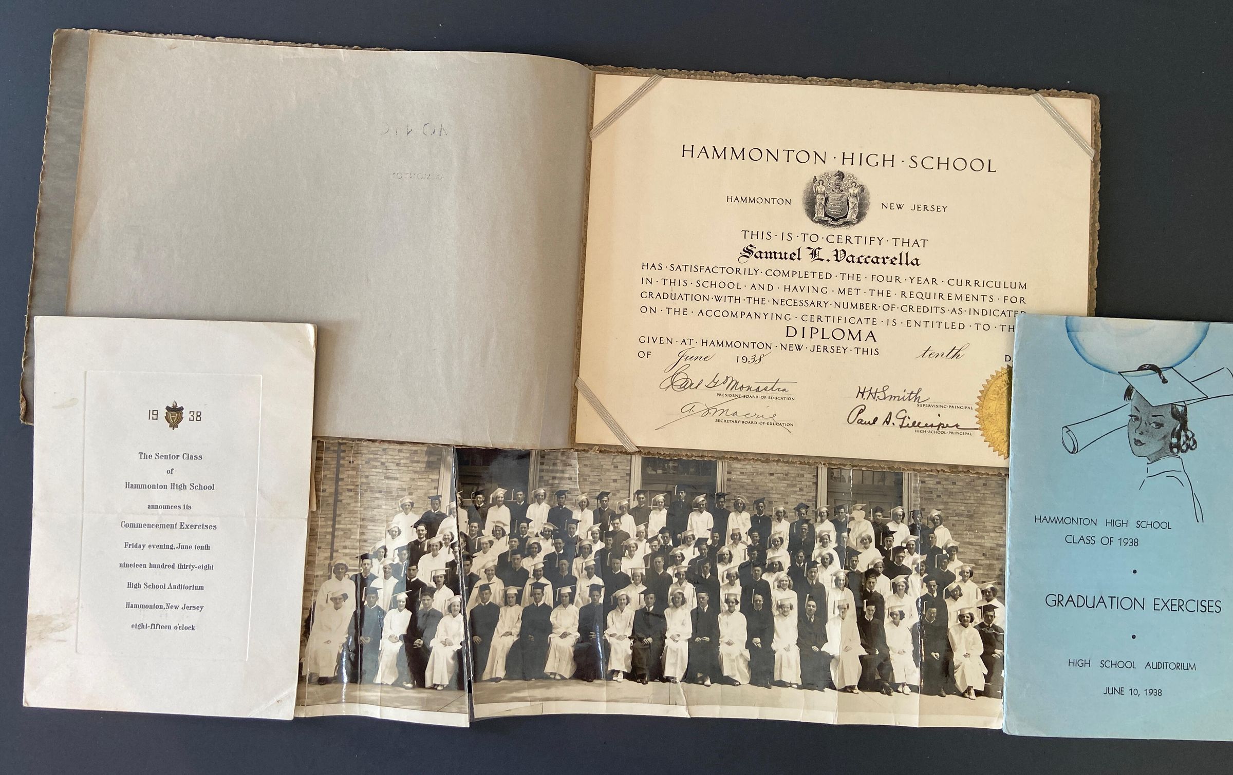 7.2.1- Photo of 1938 Graduation Class 7.2.2- Graduation Program for Class of 1938 7.2.3- Invitation to Graduation Exercises - 1938 7.2.4- HHS Diploma for Sam Vaccarella