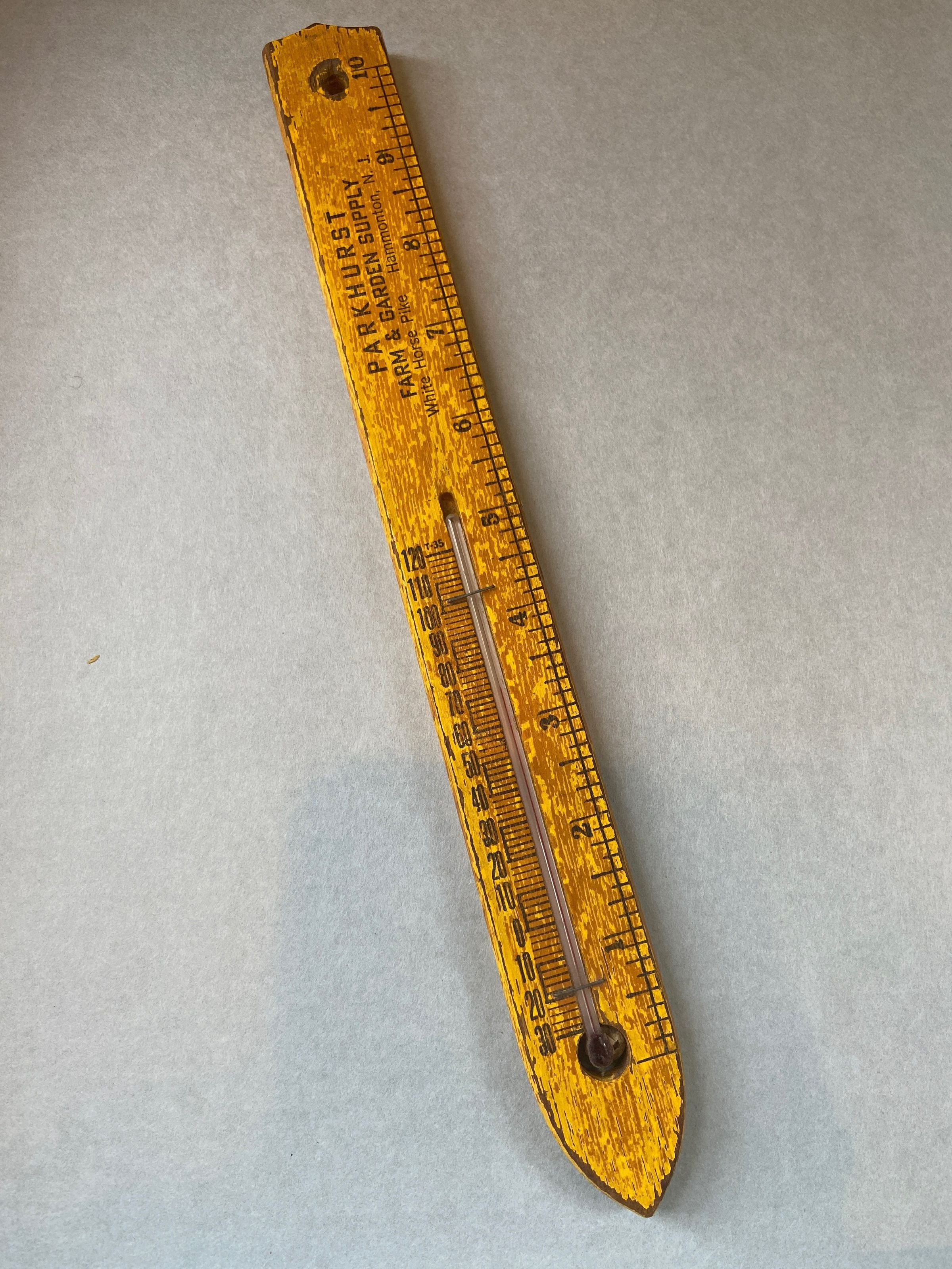 Vintage Thermometer and Ruler advertising Parkhurst Farm and Garden SuppliesAcquisition