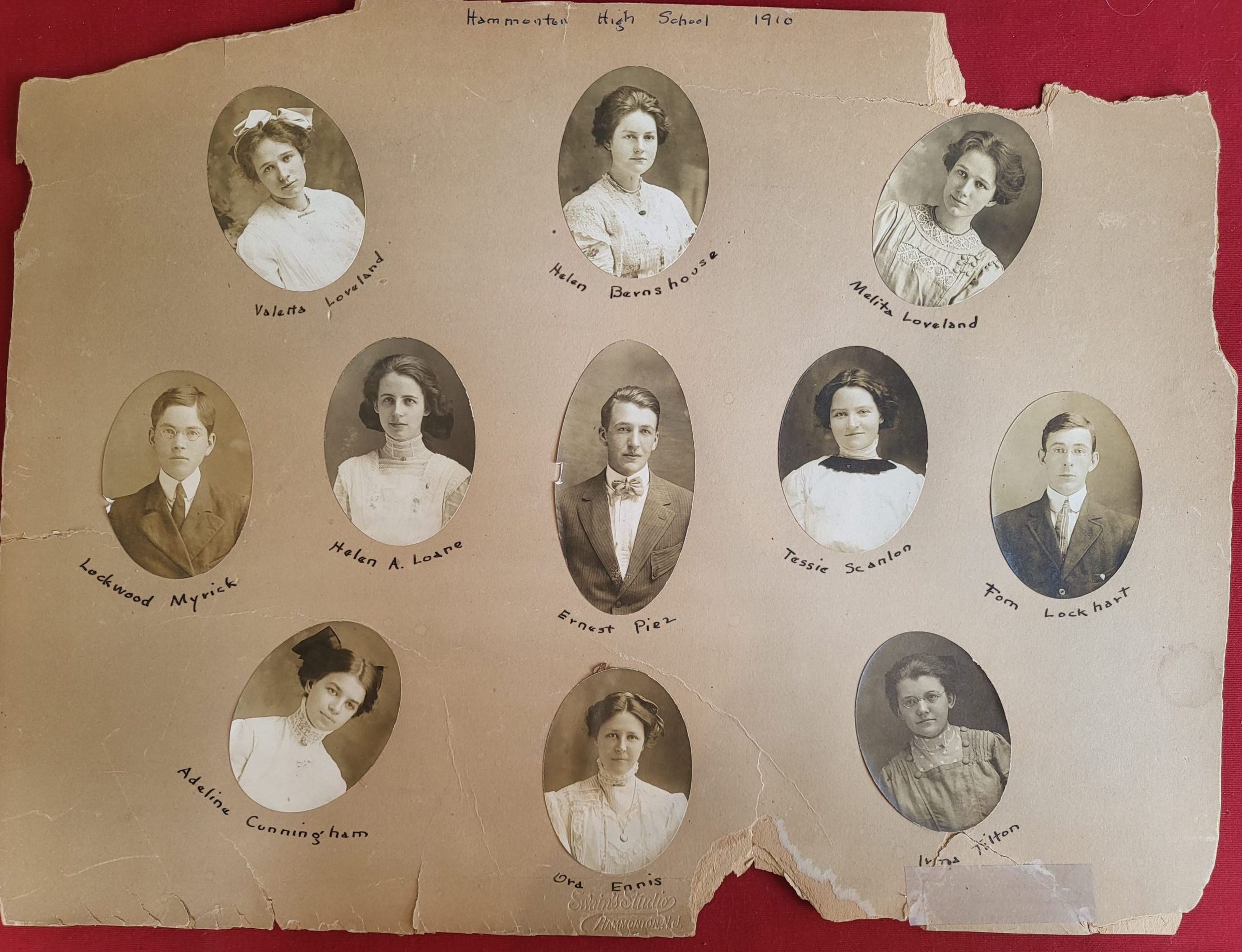 Individual photographs of the students of the Hammonton High School Class of 1910 mounted on cardboard backing.Acquisition