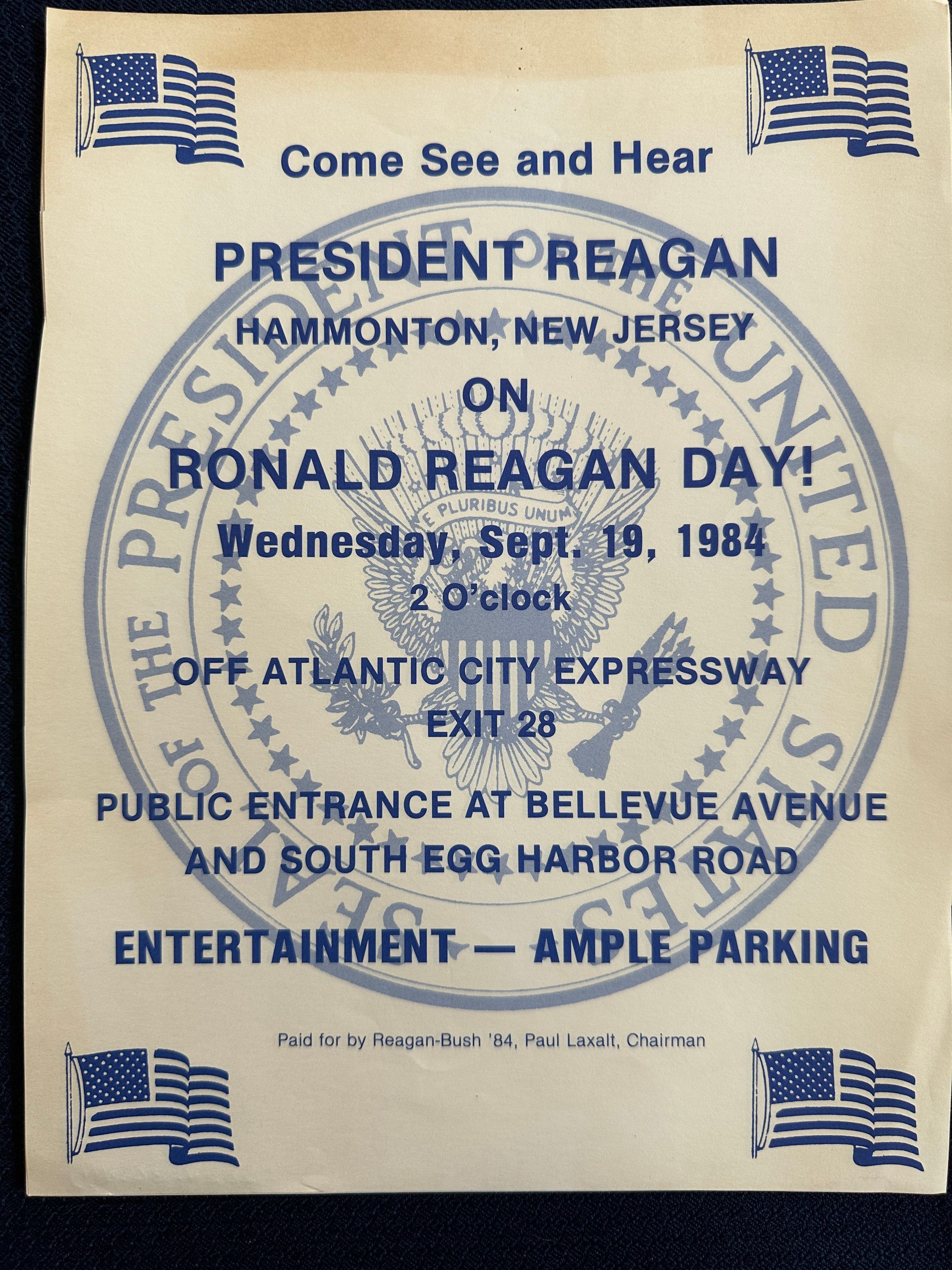 Flyers distributed inviting the public to the speech to be presented by President Ronald Reagan held Wed, Sept 19, 1984.
