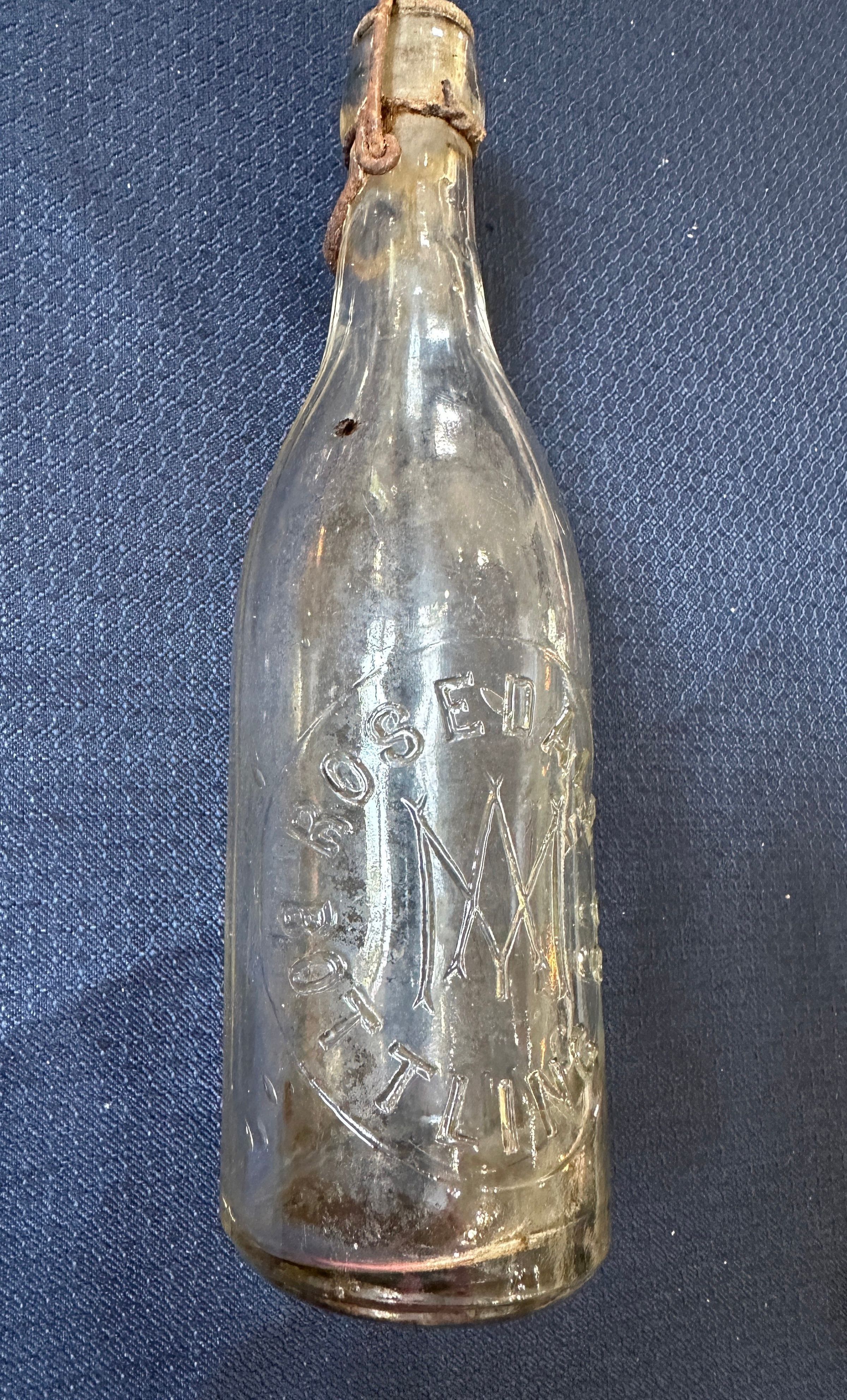 Clear bottle with Rosedale Bottling Co