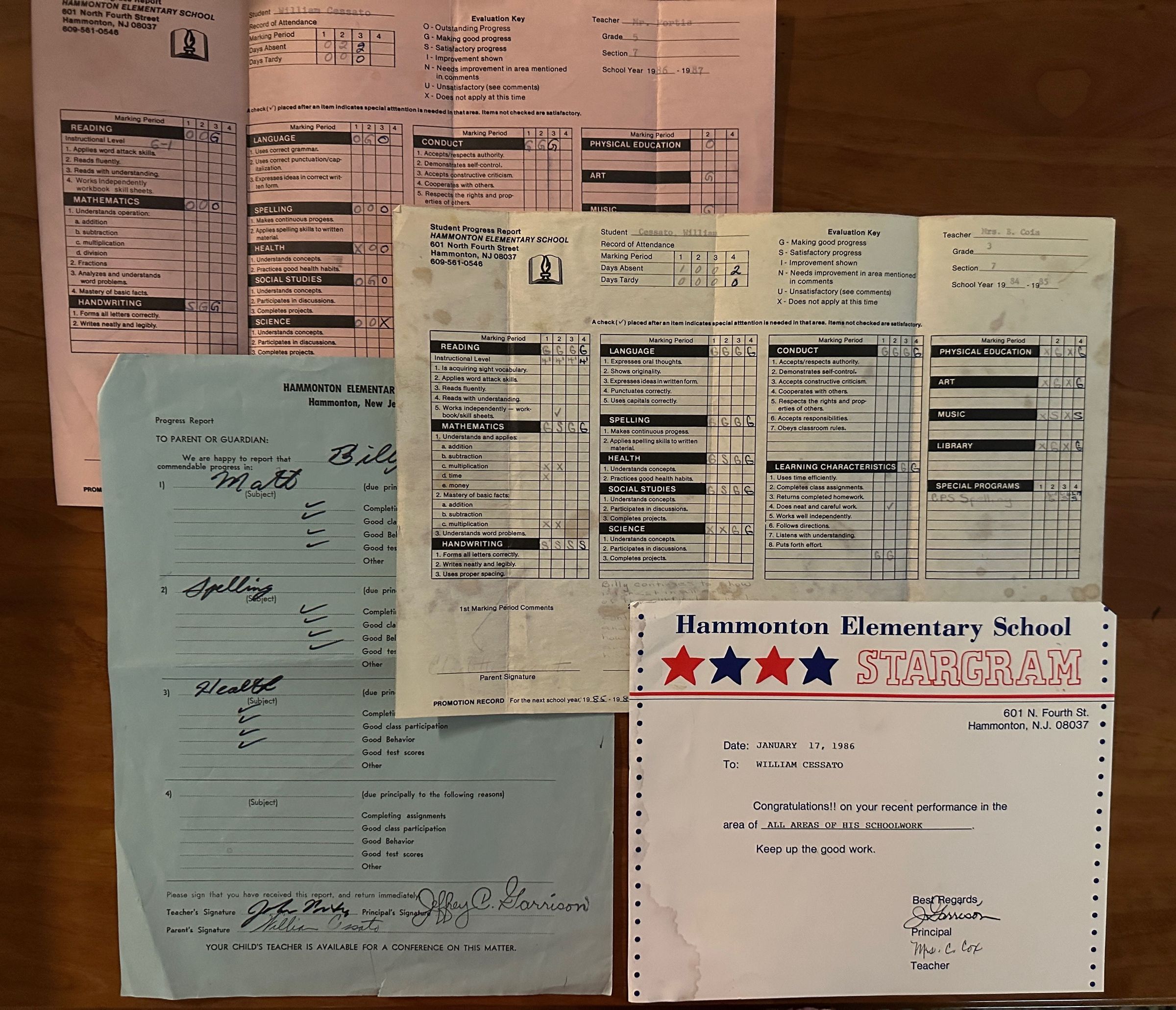 Hammonton Elementary Report Cards/Memorabilia of Bill Cessato