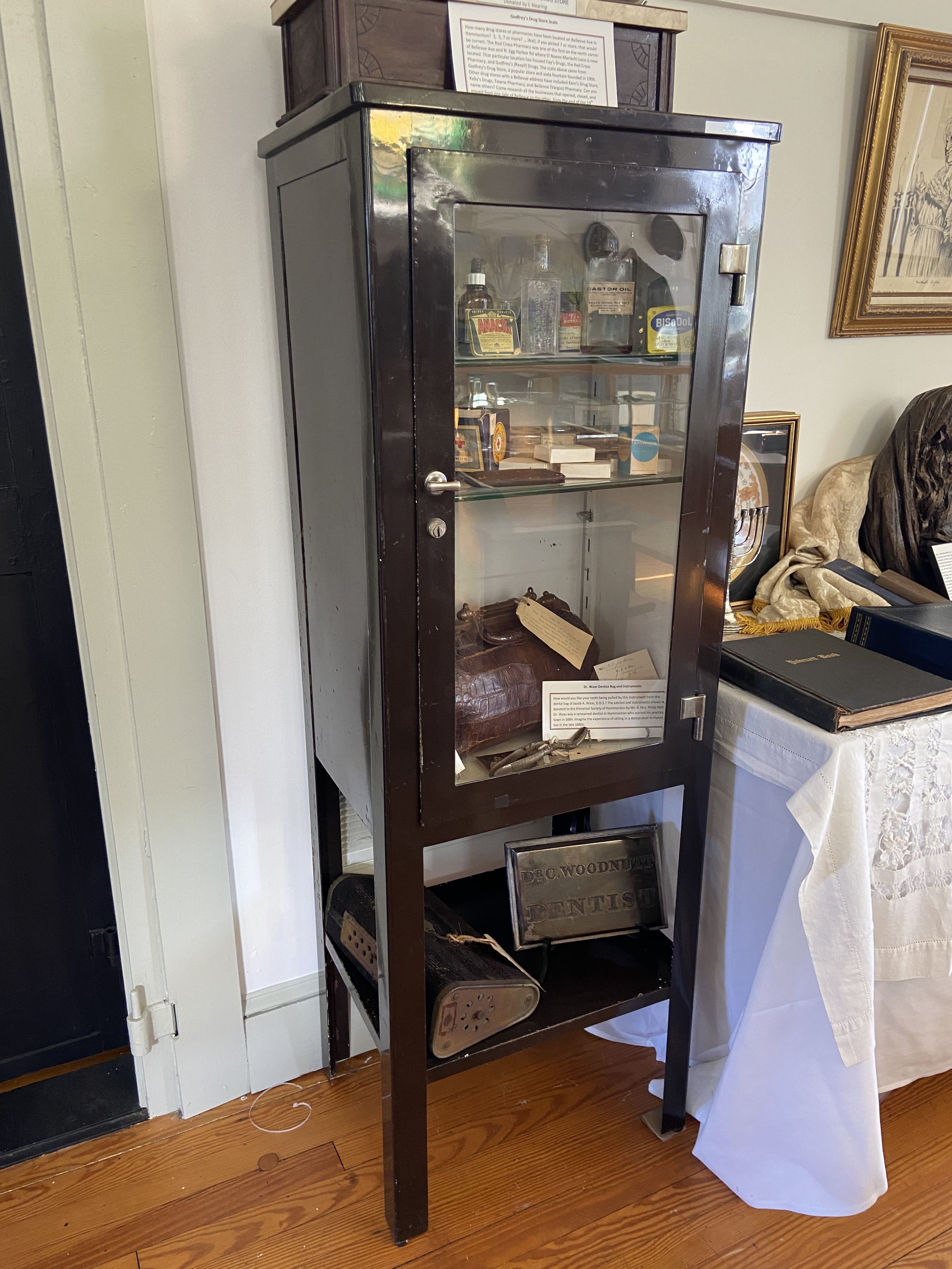Brass (?) and glass showcase, 4 glass shelves, slanted front