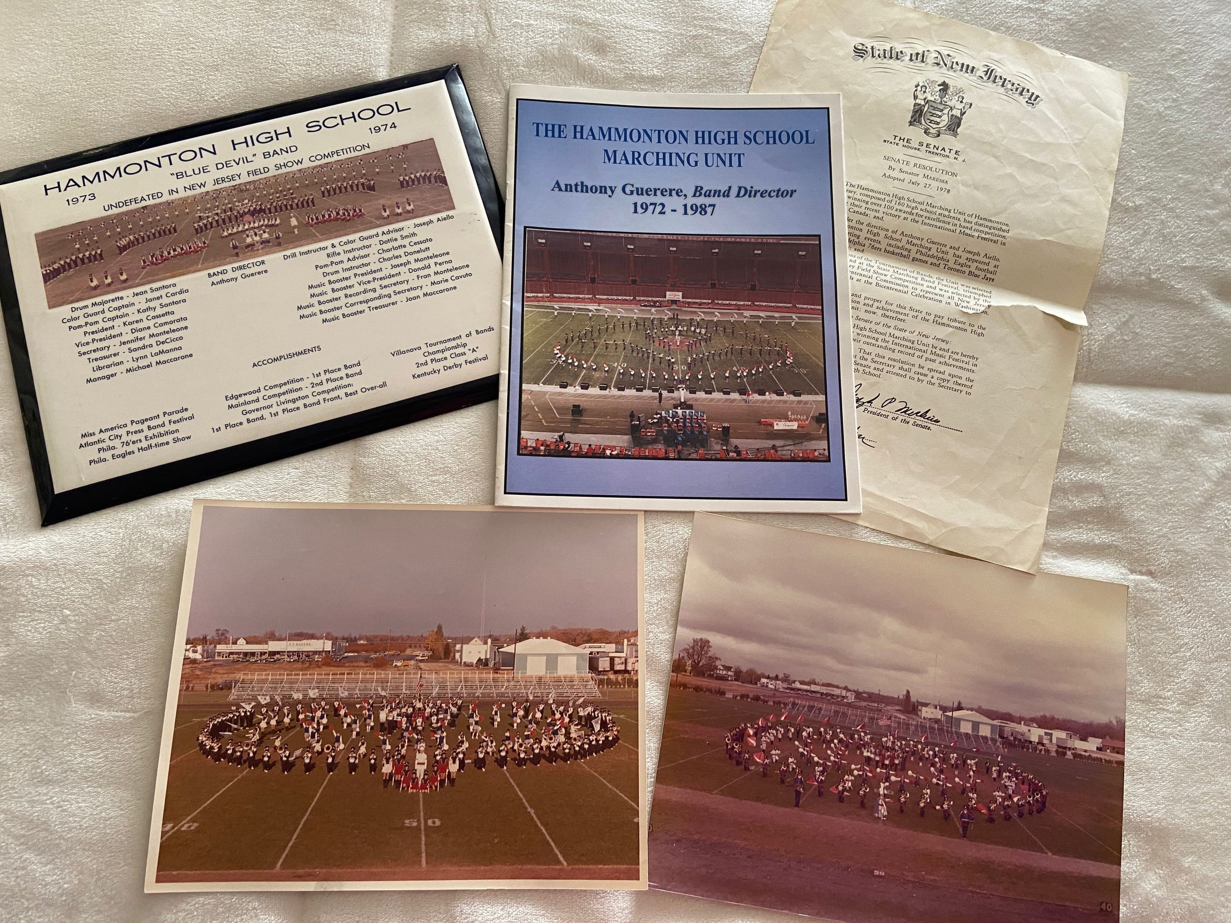 HHS Marching Band Memorabilia 2023.25.3.1- HHS Marching Band Award-Undefeated in NJ Field Show Competition, 1973-74 2023.25.3.2- HHS Marching Band 1972-1987 Honoring Anthony Guerere (2) No 2023.25.3.3- State of NJ Senate recognizing HHS Marching Band- July 1978 2023.25.3.4- Photo of HHS Marching Band- date unknown 2023.24.3.5- Photo of HHS Marching Band- date unknown