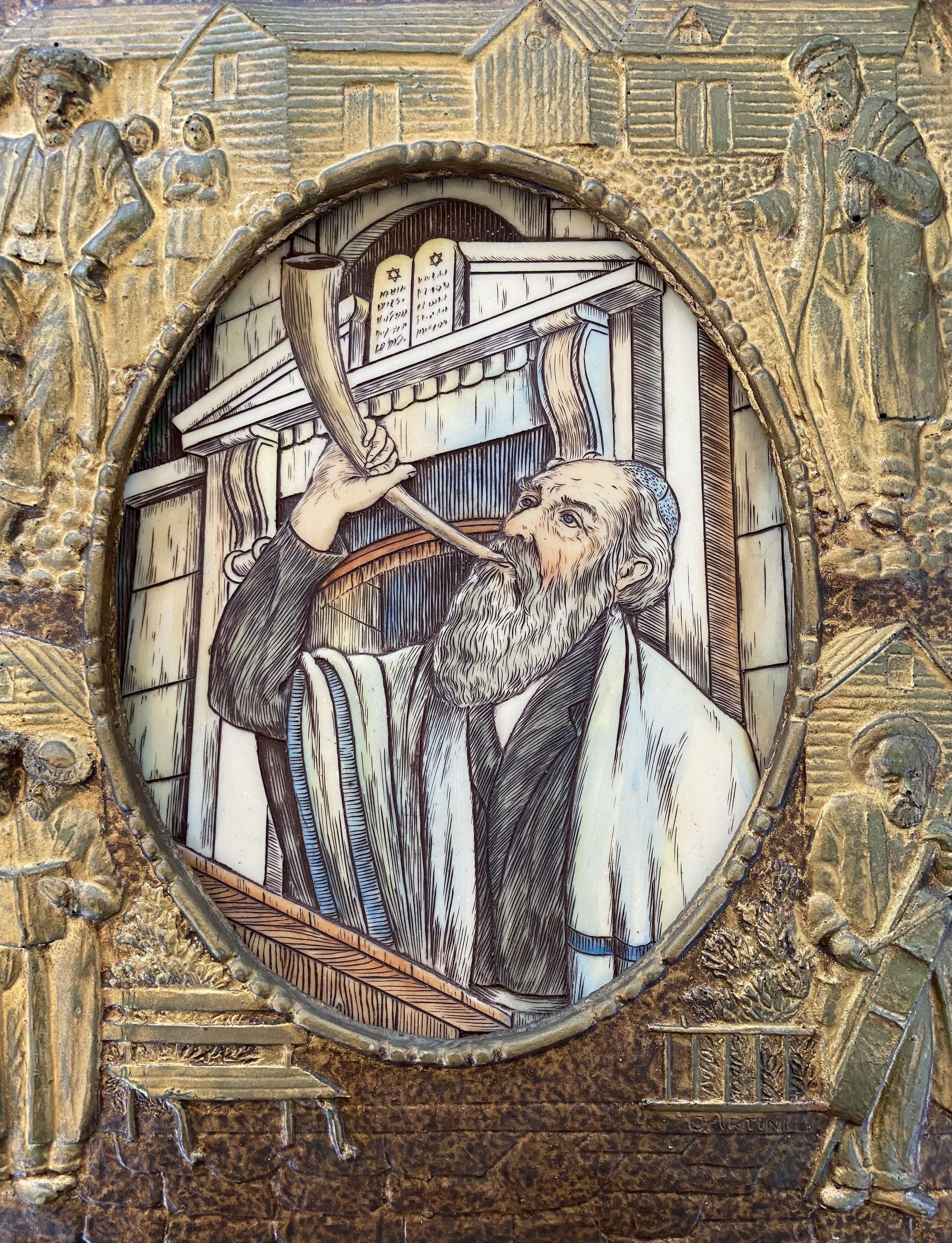 3D Ceramic Relief of a Rabbi framed by faithful depicting aspects of Jewish lifeAcquisition