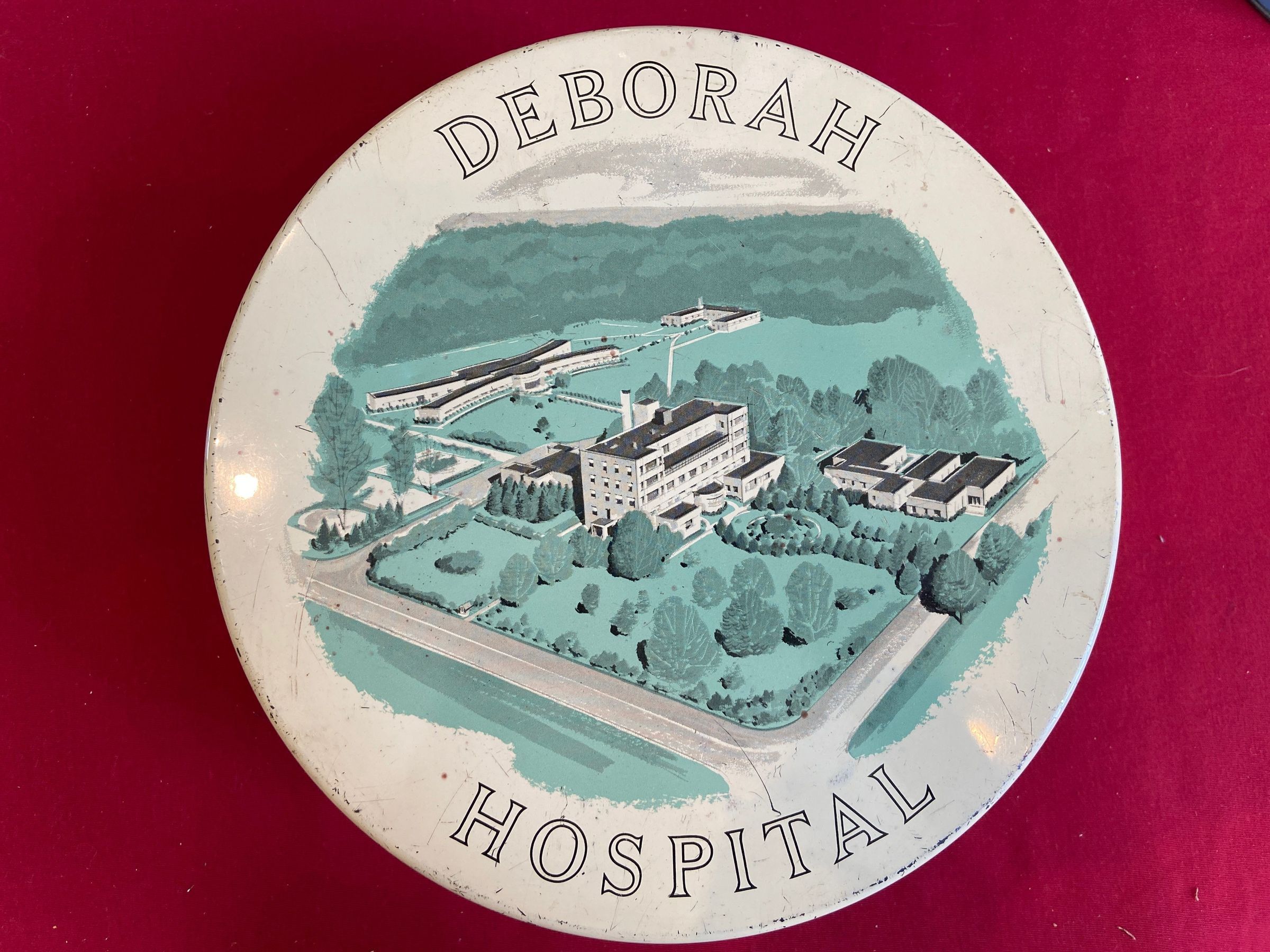 Bakery tin, used by Deer Park Manufacturing, advertised Deborah HospitalAcquisition