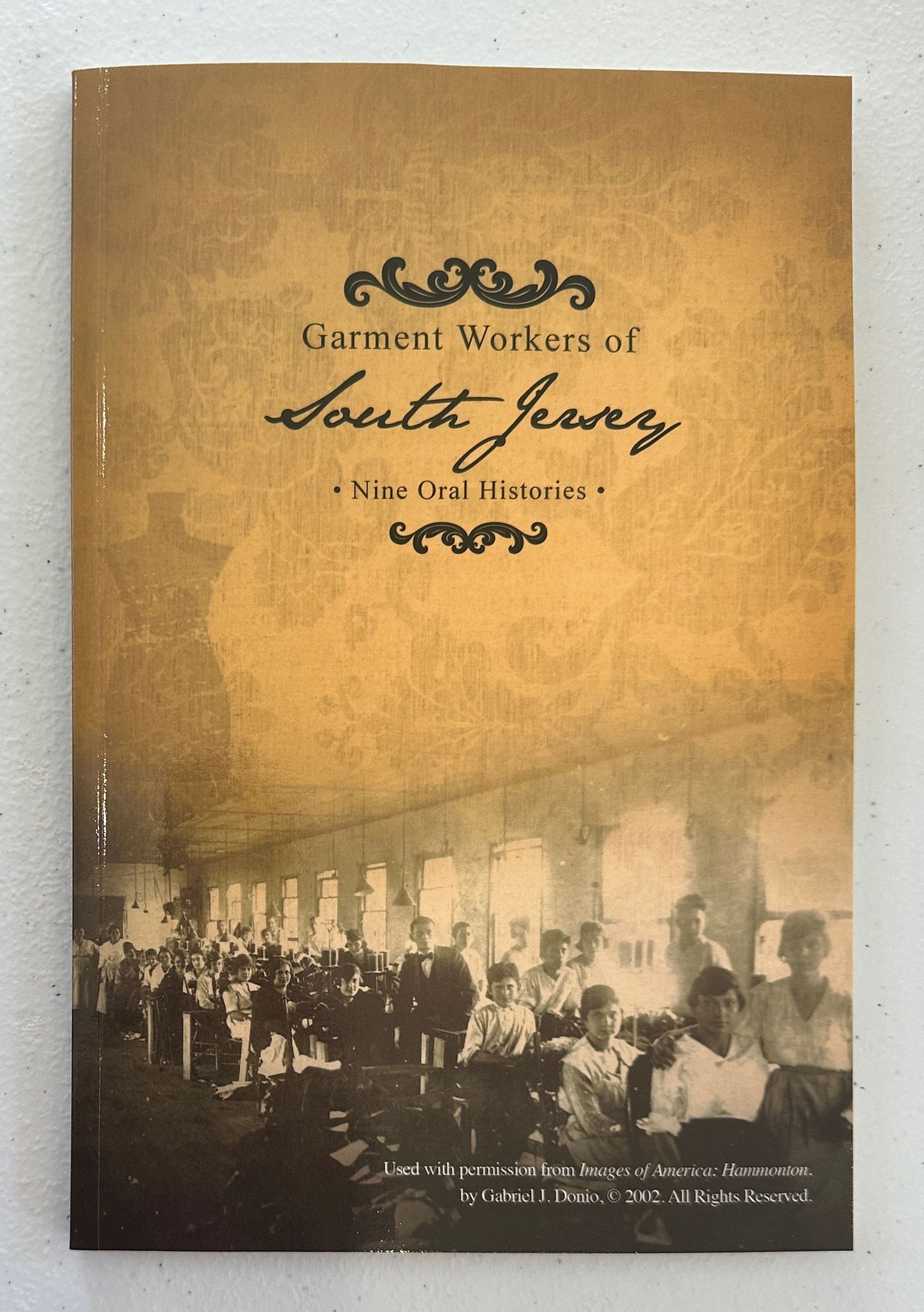 Book- Garment Workers of South Jersey, paperback that presents the oral history of 9 individuals that worked in the garment factories in Hammonton, NJ. Editors Lisa Cox, Tom Kinsella, teal, Published by Stockton University, 2016Acquisition