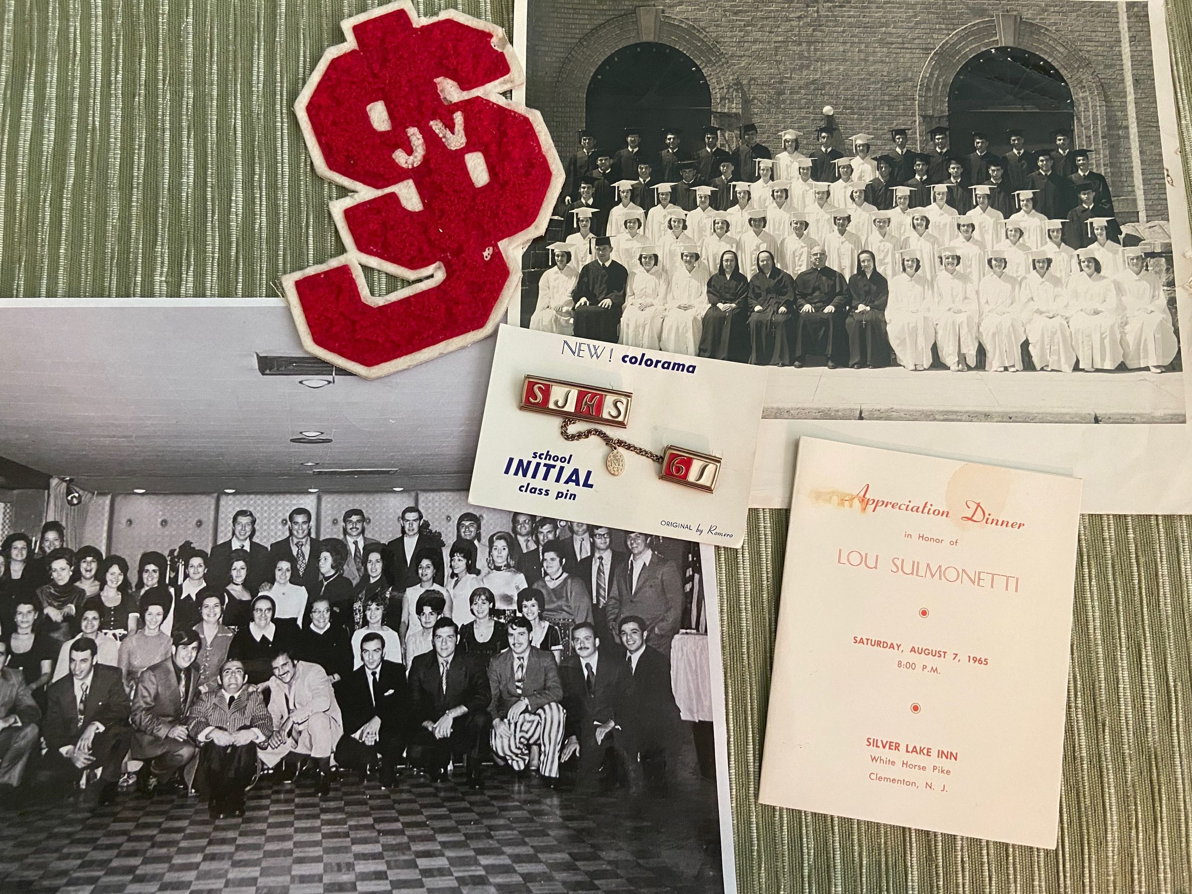 2023.25.8.1- St. Joseph’s Class of 1961 2023.25.8.2- St. Joseph’s JV team patch 2023.25.8.3- St. Joseph’s class pin initials 2023.25.8.4- 2023.25.8.4- St. Joseph’s Appreciation Dinner Program for Lou Salmonetti in 1965 2023.25.8.5- St. Joseph’s Class of 1961 HS Reunion taken in 1971