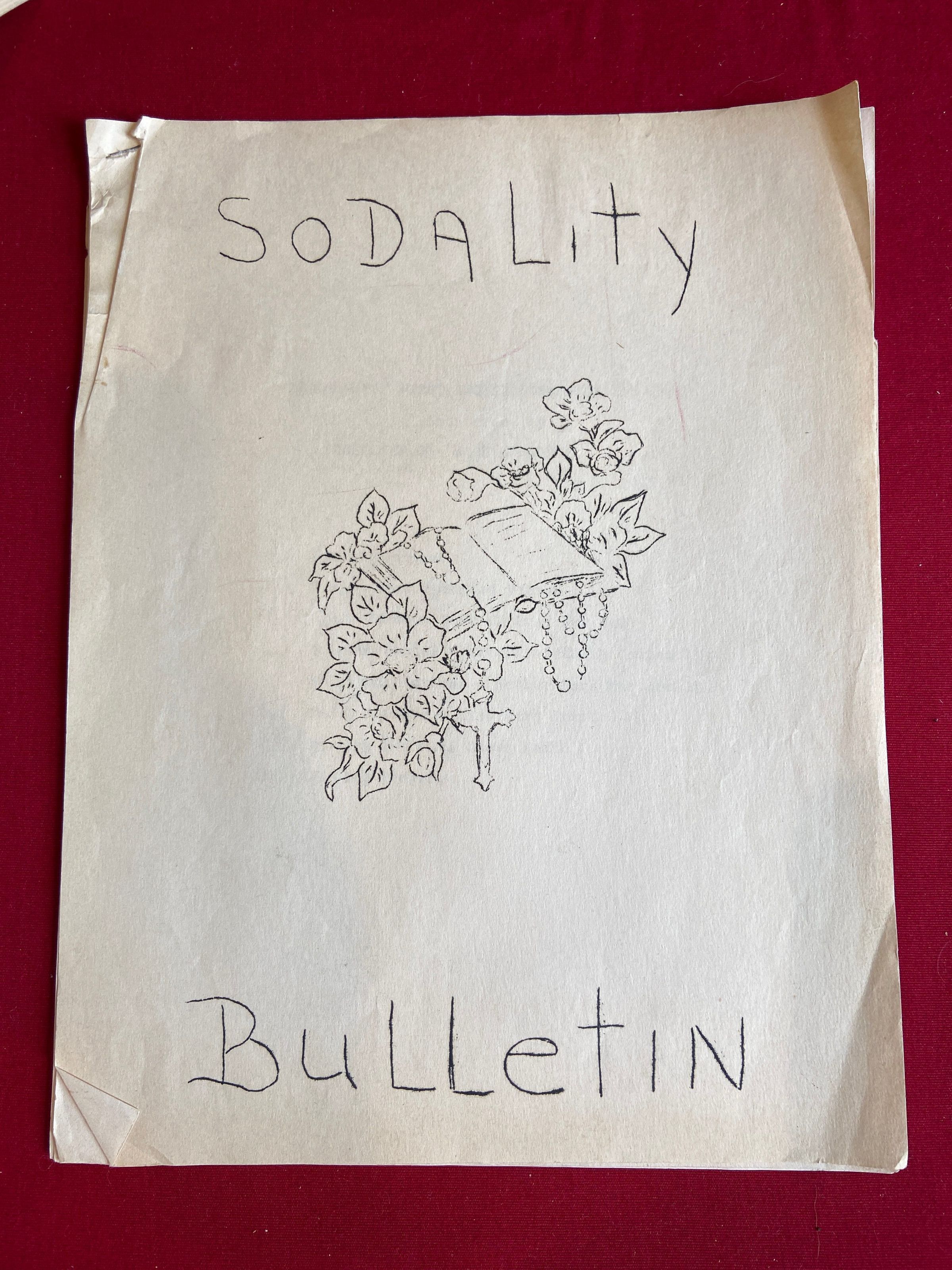 The Sodality Bulletin is a program, presented May 6, 1951 for the First Annual Communion Breakfast, written by the “Children of Mary Sodolity”. Besides the program and speakers, the Bulletin presents poems and short discussions of various topics including “indulgences”, best types of books to read and other topics in Catholic Education.