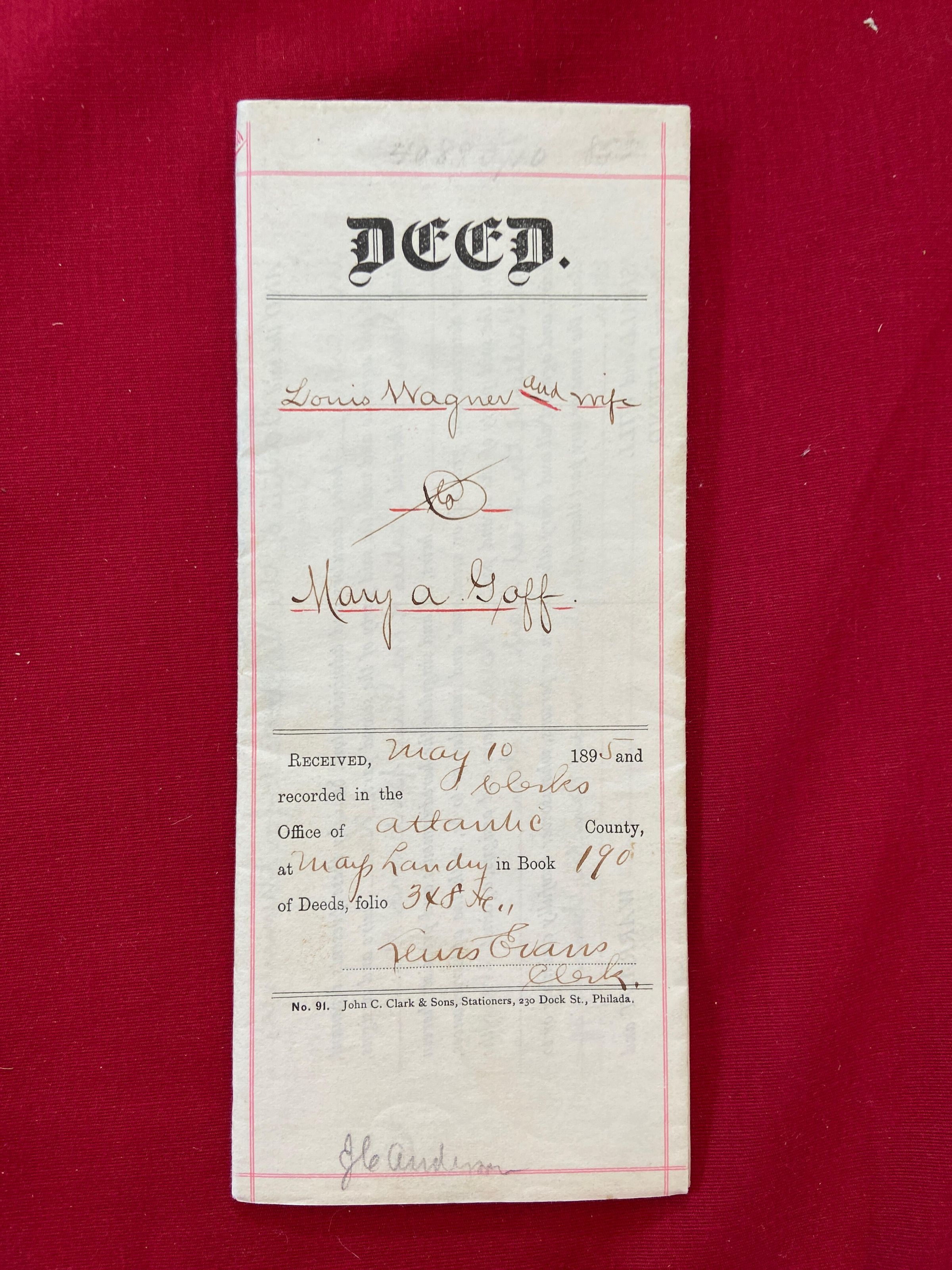 Deed 1895- Louis Wagner to Mary A. GoffEntry/Object ID
