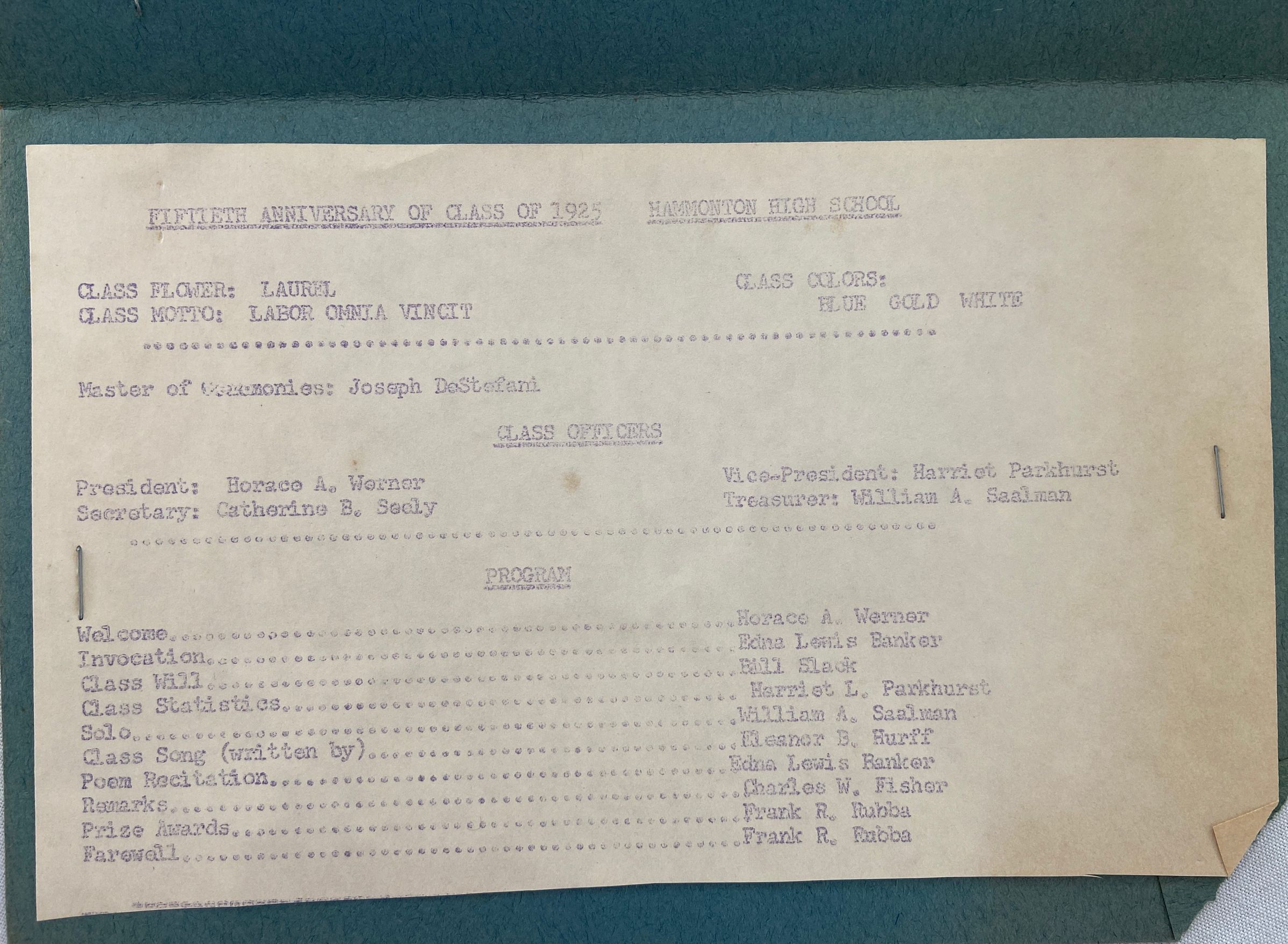 Program- 50th Anniversary, HHS Class 1925Entry/Object ID