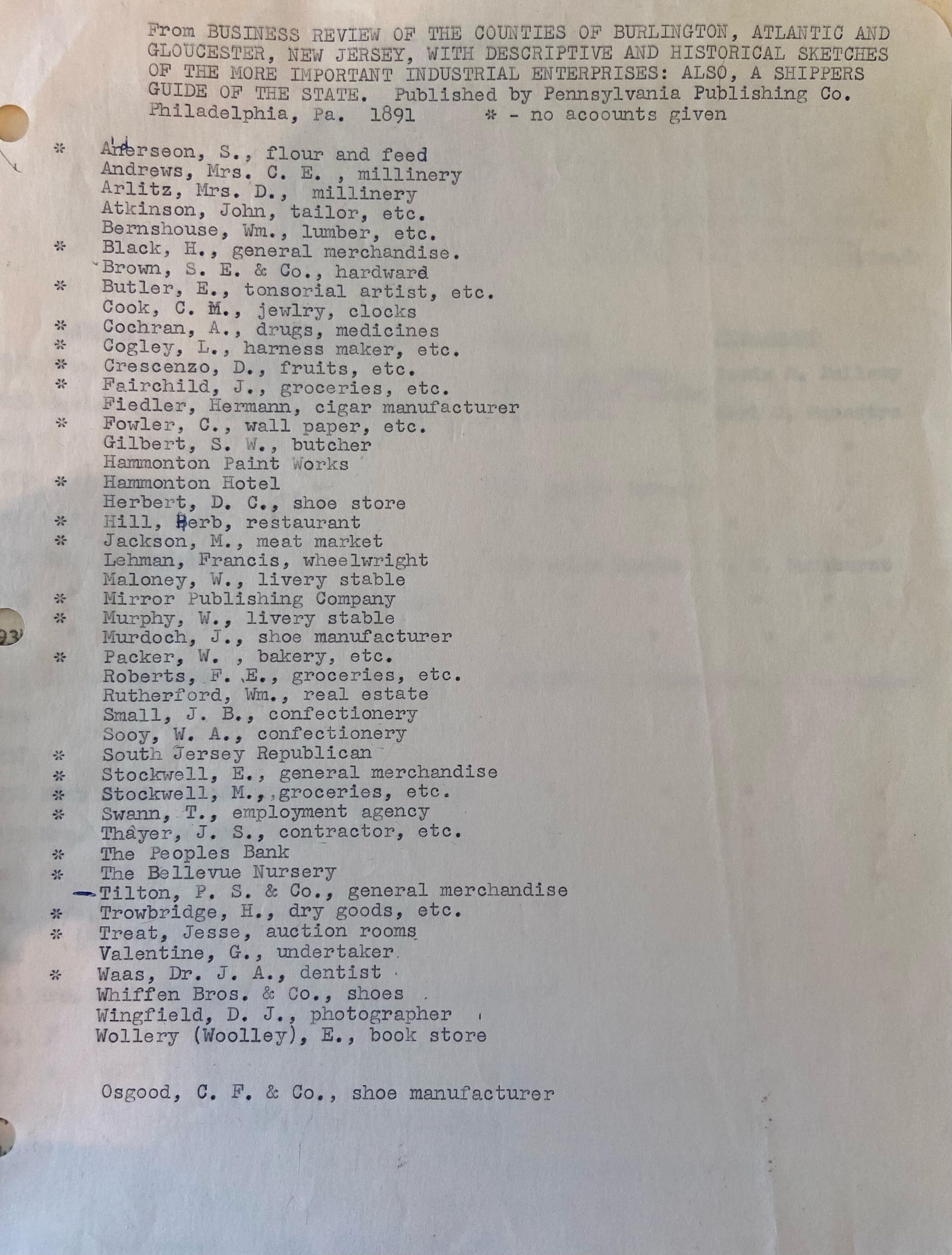 These notes are from EM’s contribution to the Story of Hammonton, written by William McMahon, published 1960Acquisition