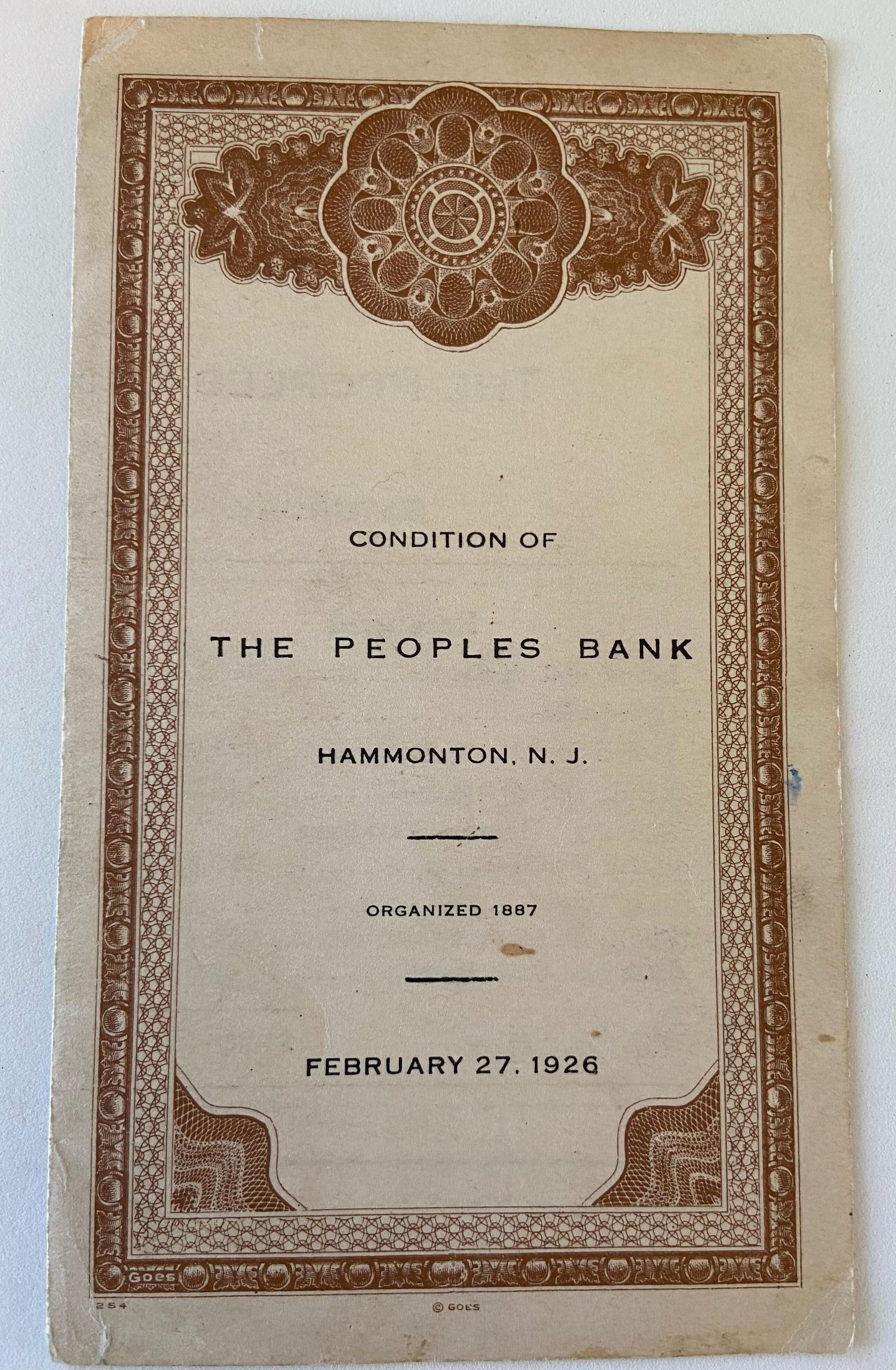 Condition of the People’s Bank - Hammonton, NJ Booklet