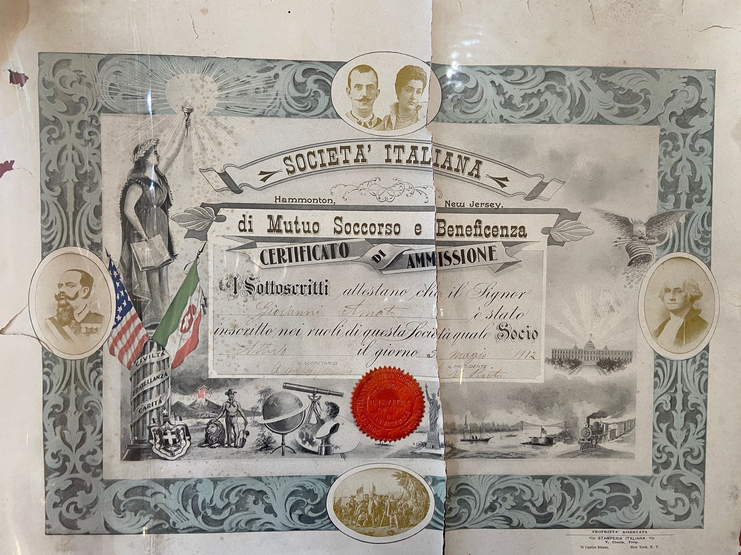 Certificate Societa Italiana for Giovanni Amato in 1912